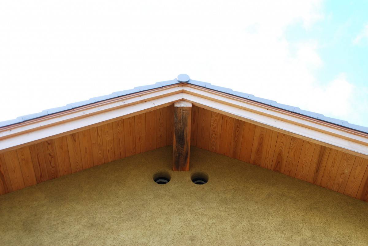 木組み・土壁の家 五角形の屋根は傘のような木組みが印象的...