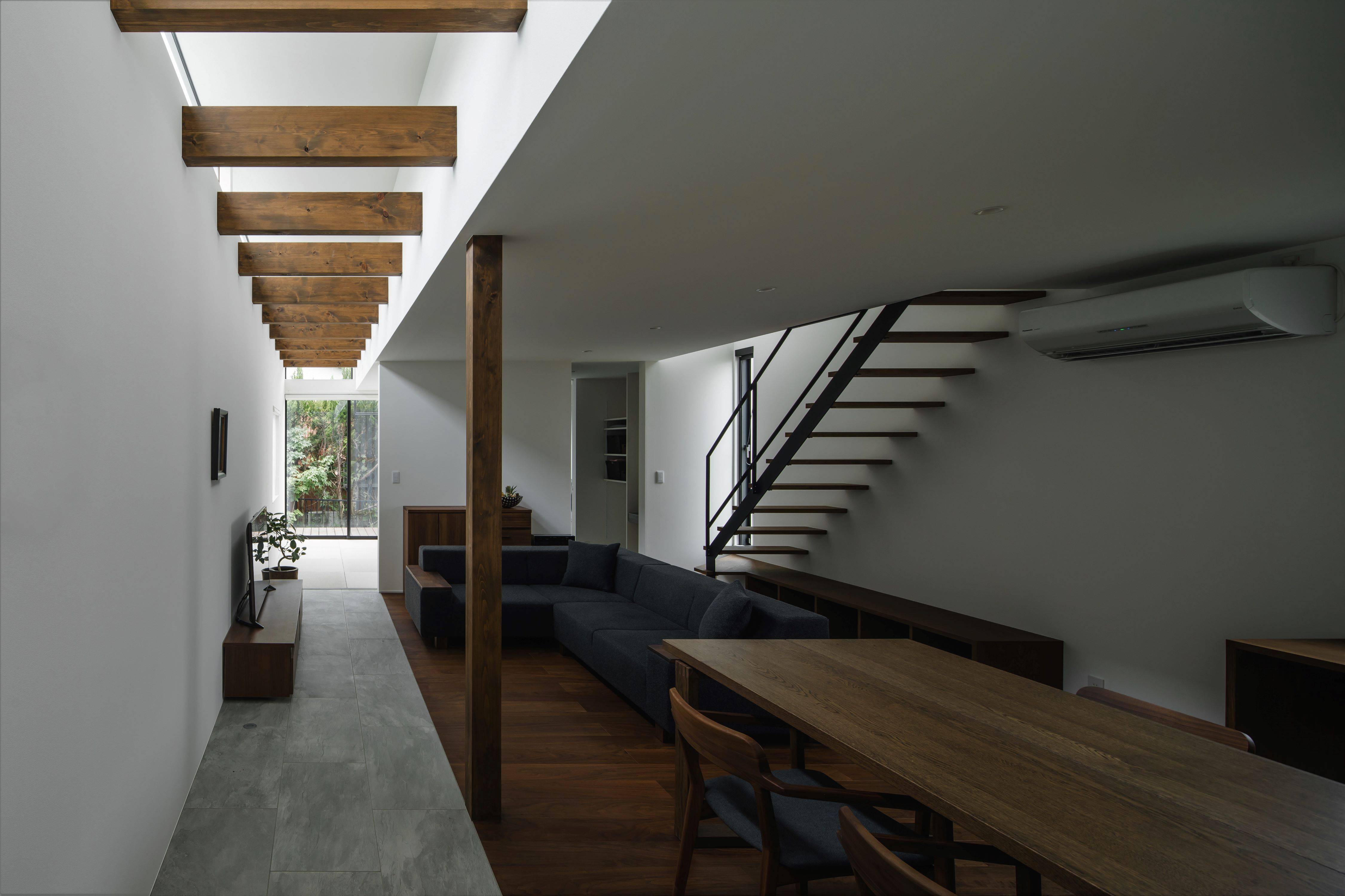 庭廊を見上げると梁が並び、その梁は時間の流れに沿ってLDKに影を落とし、様々な表情を見せてくれます。