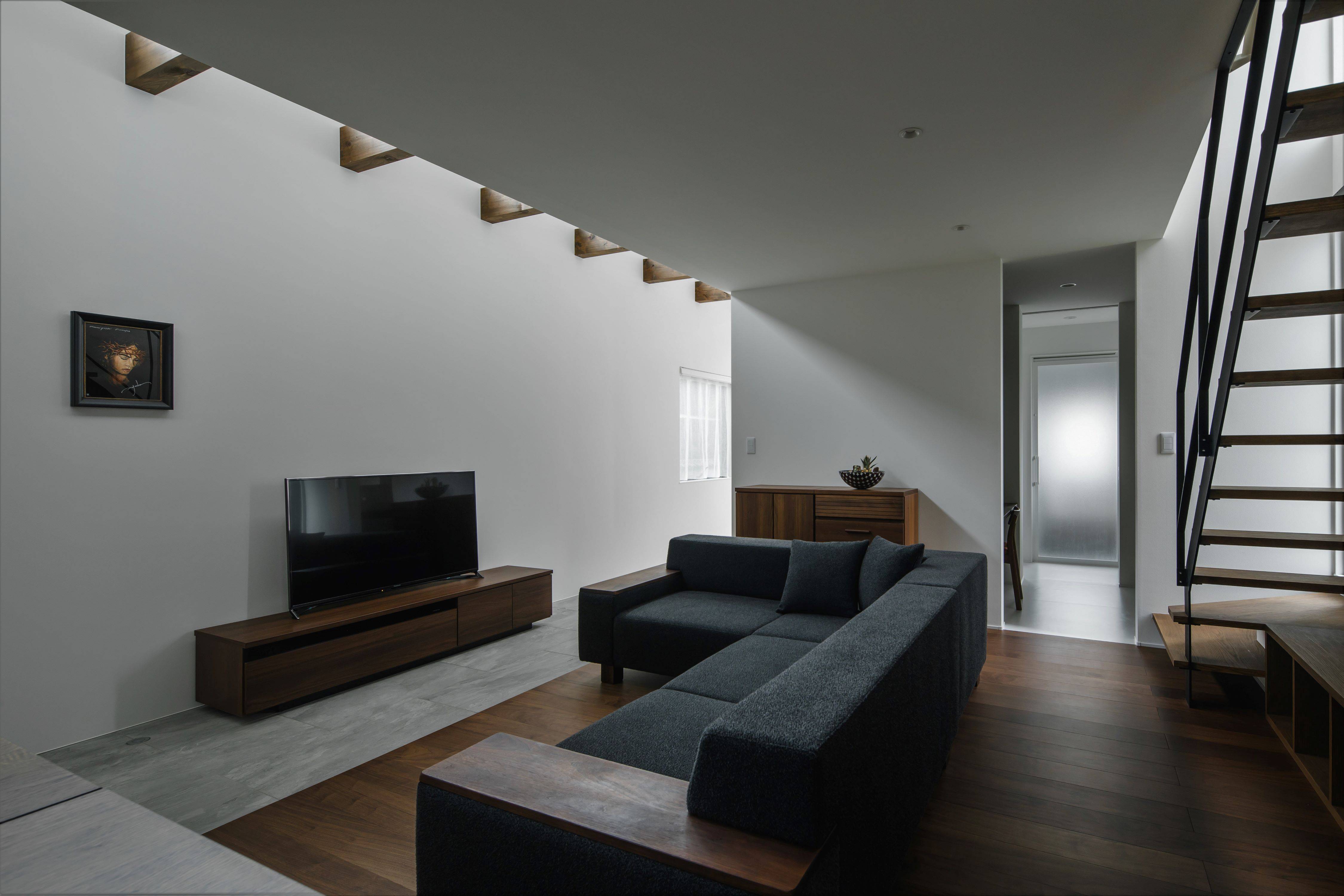 リビングから見る廊下は柔らかな光を落とし込み、時間によってゆるやかに変化する空間は、非日常を感じさせる空間であり、ここに住むご家族の暮らしを豊かにする場所になっています。