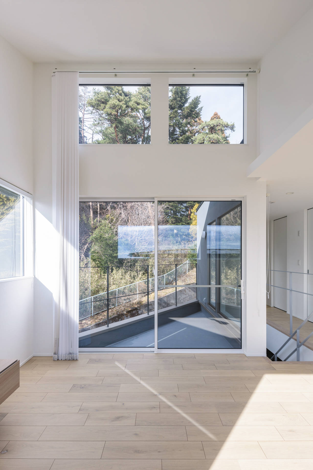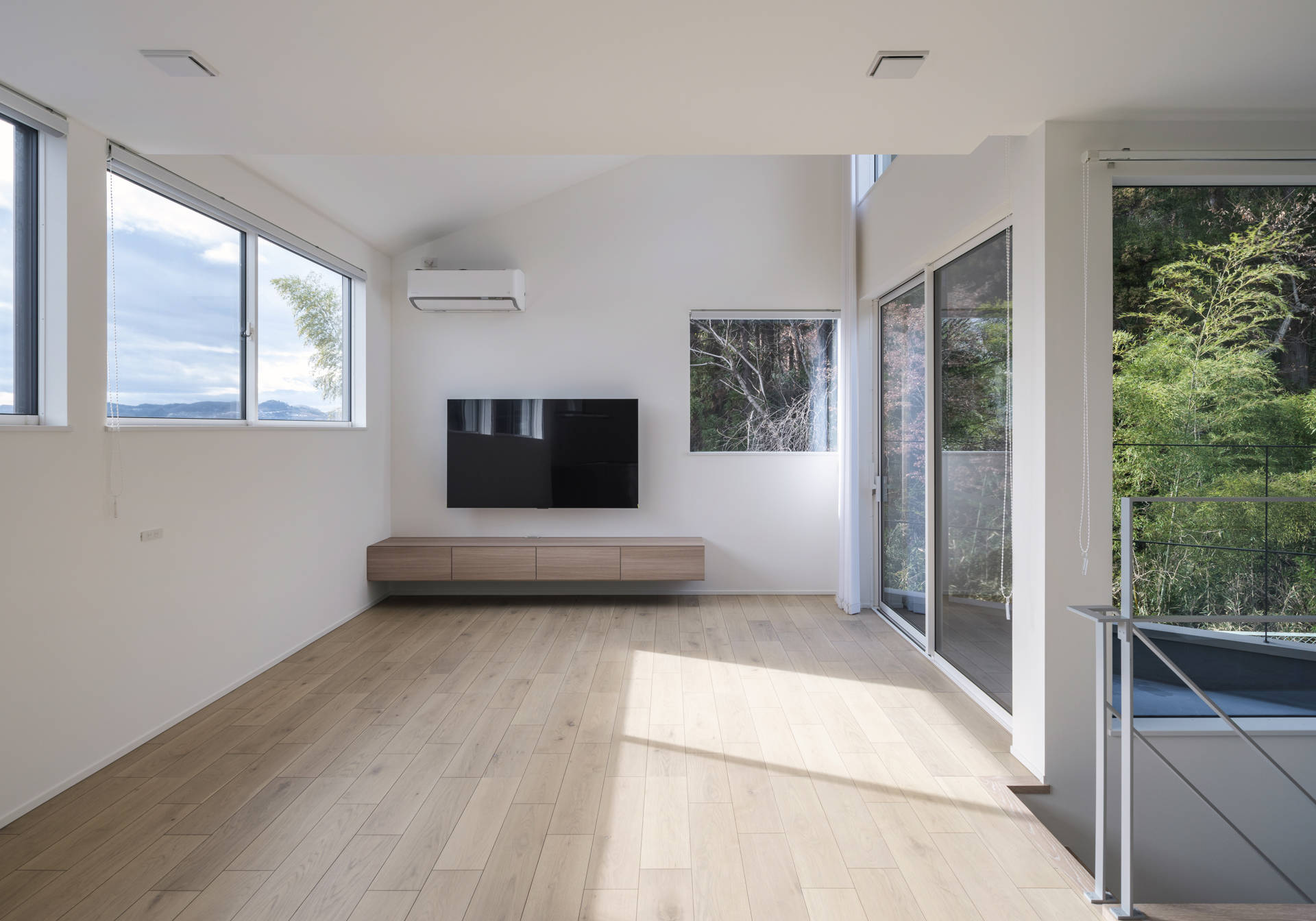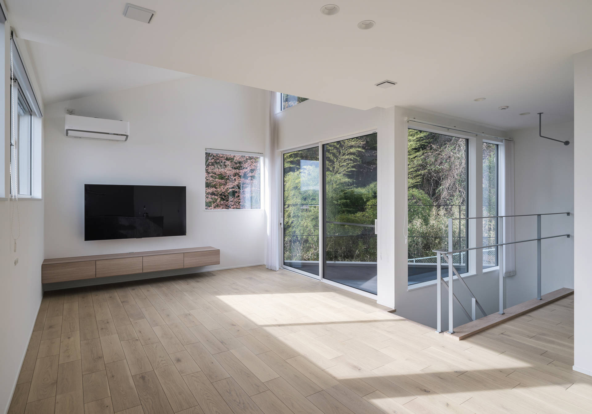 またLDKは環境の良い2階に配した。2階では家族が心地よく暮らせるように視線が抜ける方向に風景を切り取るピクチャーウィンドウを計画しました。