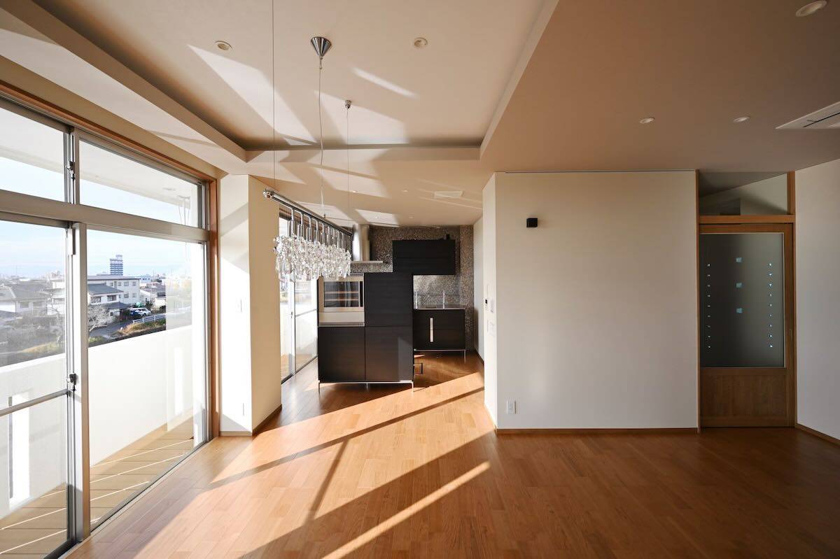 構造躯体と外装、防火区画の階段部以外は全て撤去し間取りを現在の住み方に合うように全面的に設計しなおした。