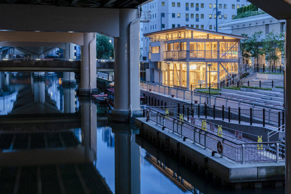 β本町橋は、大阪市との協定に基づく民間事業による水辺の公園施設であり、占用水面を活用しながら、地域の人々の生活を豊かにすることを目的に構想された。施設の運営を行うのは、長年にわたってこの地域のまちづくりを担ってきたチームであり、設計にあたって重要な要望として共有されたのは、日常の延長にある施設でありたいということだった。ただし、それは決まったいつもの日常の繰り返しではなく、オープン後にも、地域の人々に向けた新たな試みが行われ続ける“日常” の実験基地でありたいということであった。施設名称であるβにも「未完成で常にアップデートする」という思いが込められている
