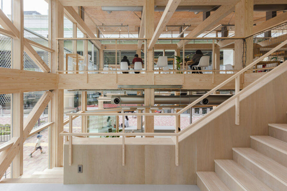 架構は木の構造特性から、4.35m 及び3m×3mを基本とした均一な格子を採用し、長く汎用的に使える空間とした。この架構は住宅等と同じ流通サイズ木材での通常在来木造工事が可能であり、コスト合理性に配慮し、施設運営にも寄与している。また、耐力壁には特殊な筋違を採用し、公園へと広がる視線を妨げない様計画とした。