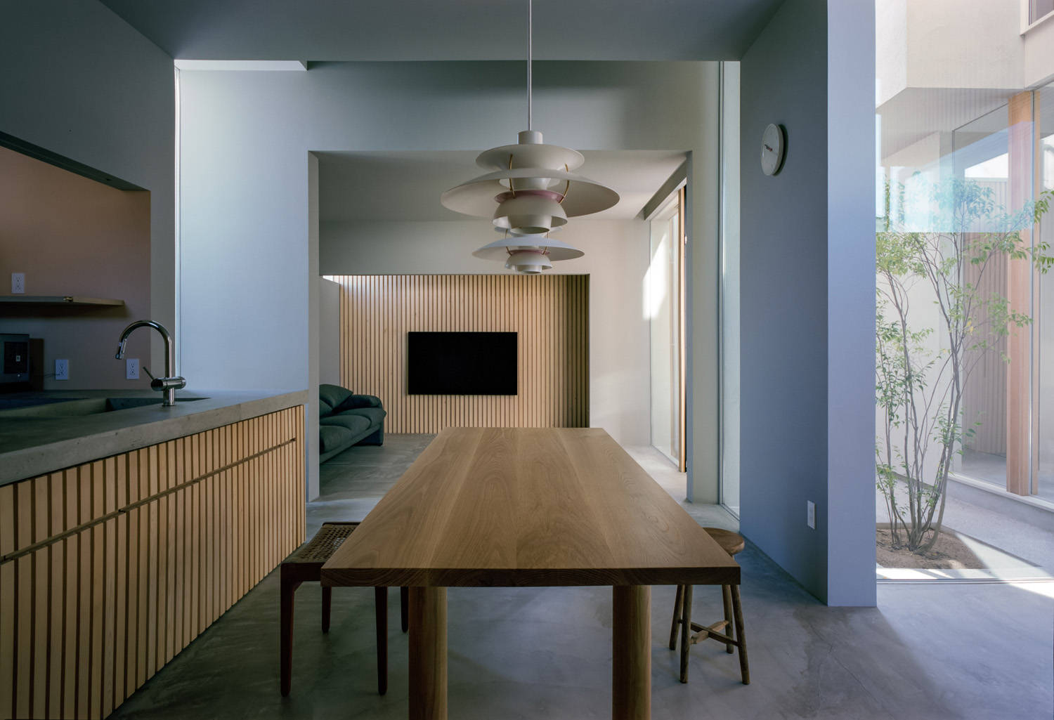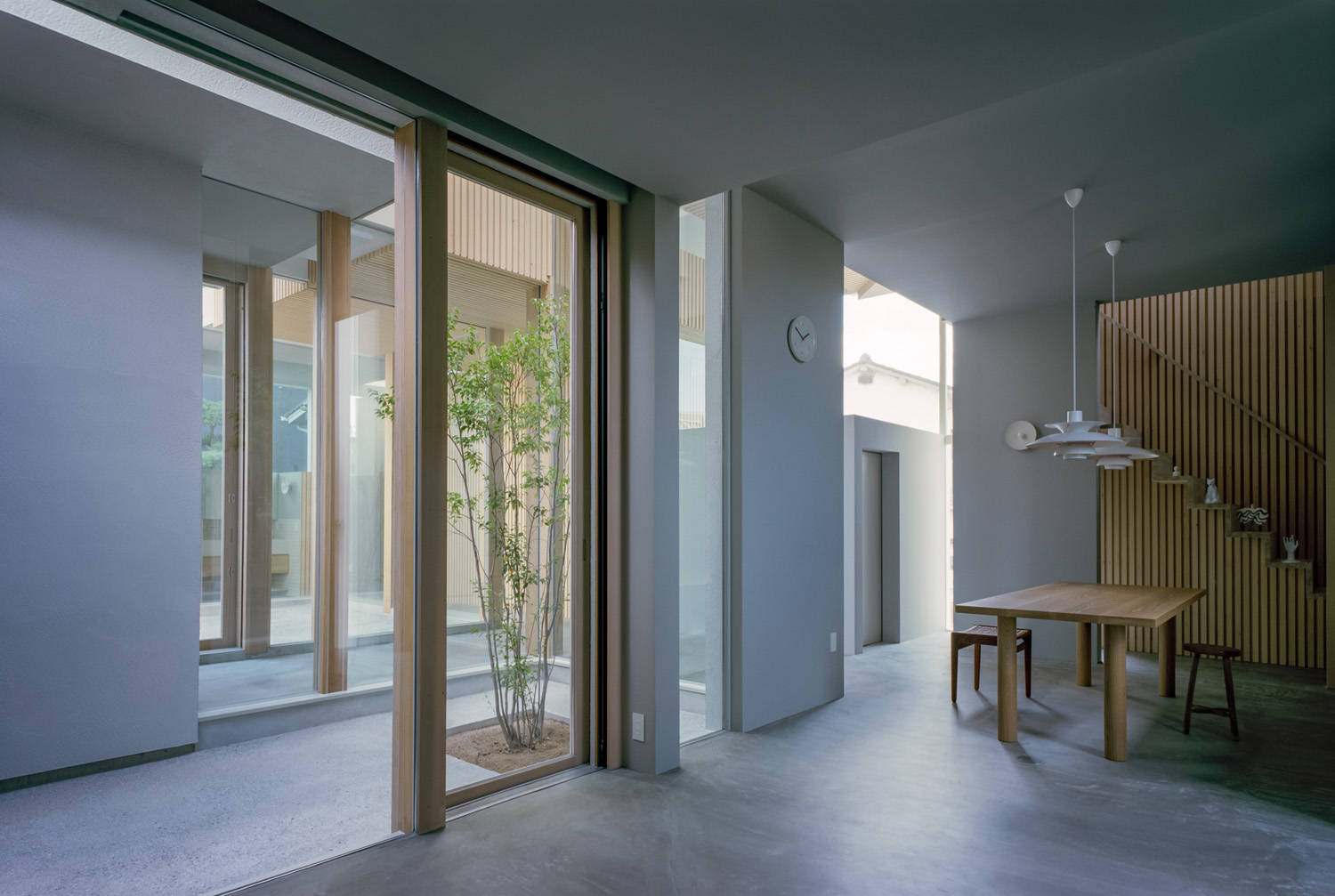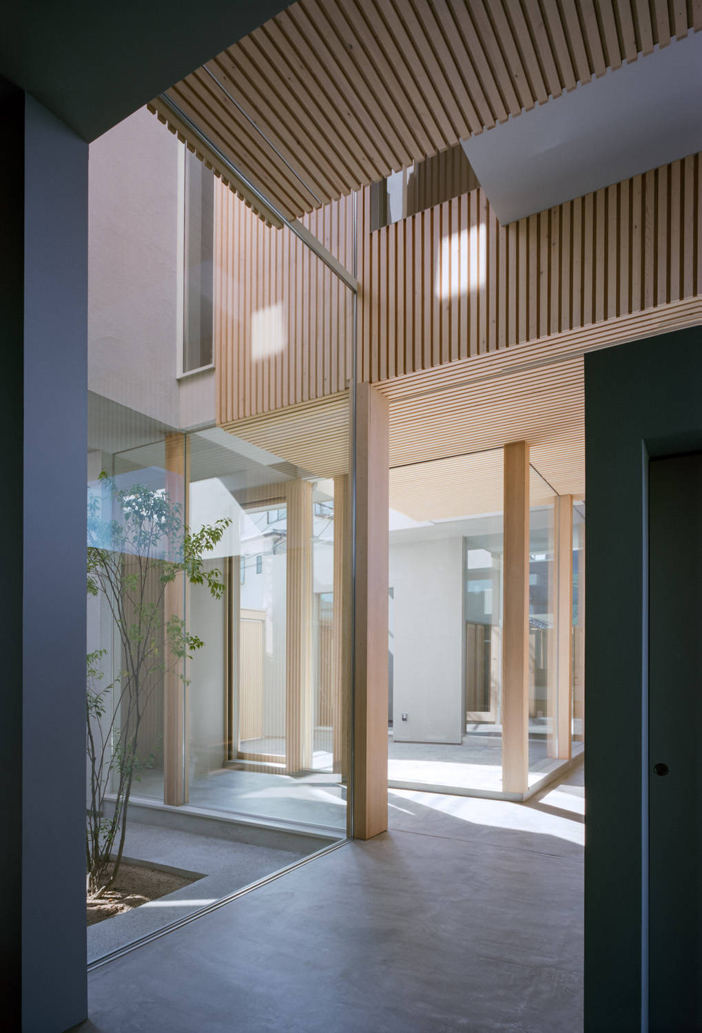 そのような状況から、計画の方針としては、道路からのプライバシーを確保しつつ、建築の中に自然な表情を作り出すことを目指しました。