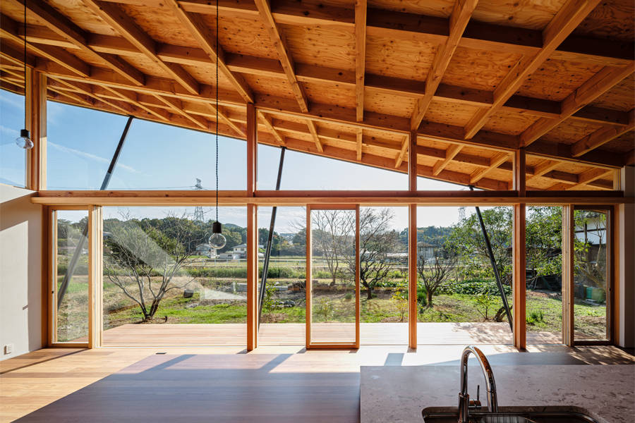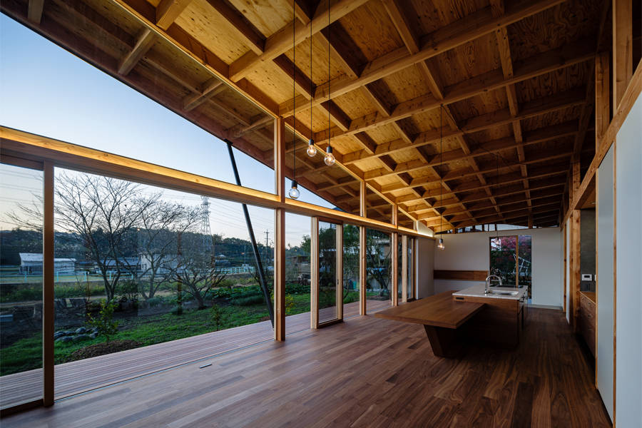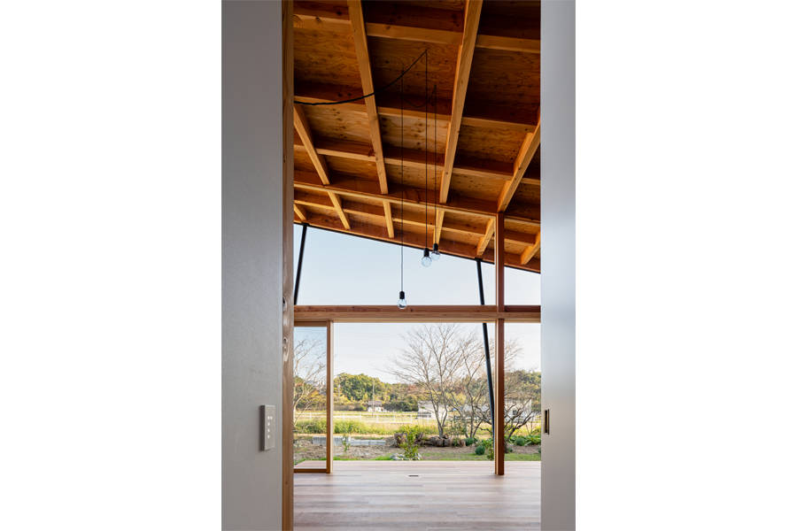 単に一戸建ての住宅を建てるというよりは農用地に囲まれるこの敷地に建築することで同時にこの辺一帯の農家のための架構となることを目指した。