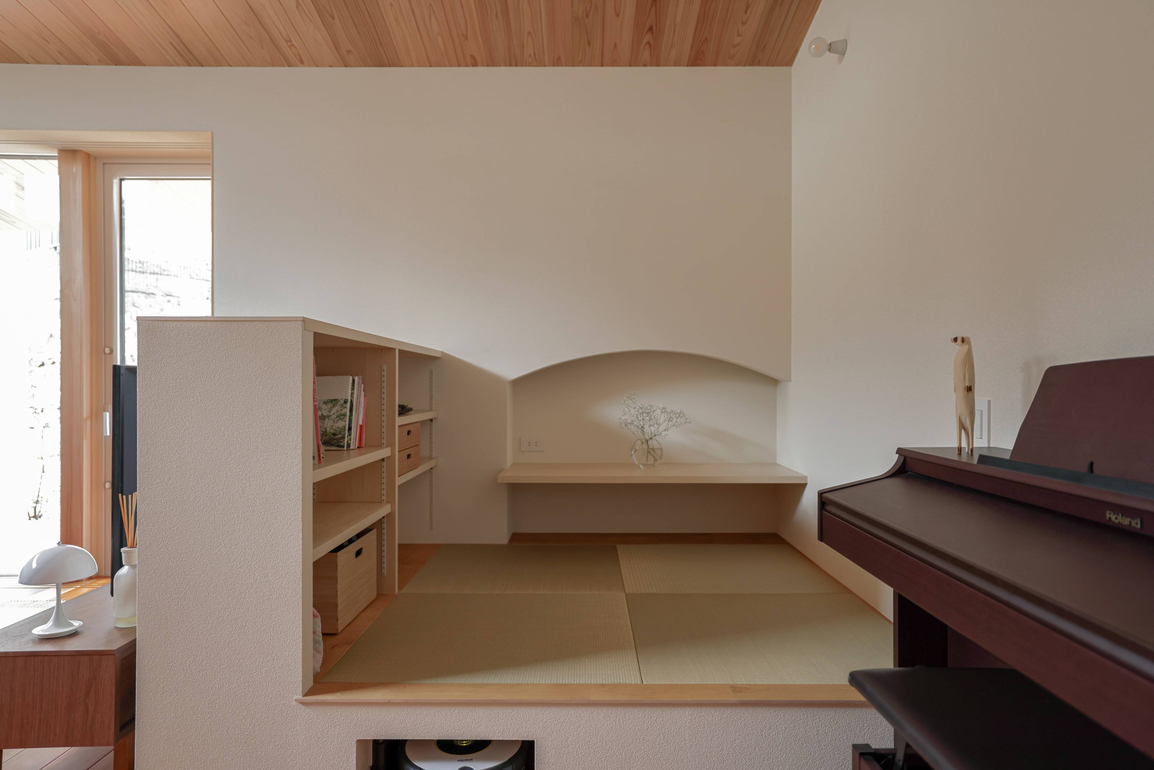 また、2階のスペースからは、山々や桜が見える空間がありこの場所をフリースペースとして家族の居場所としました。