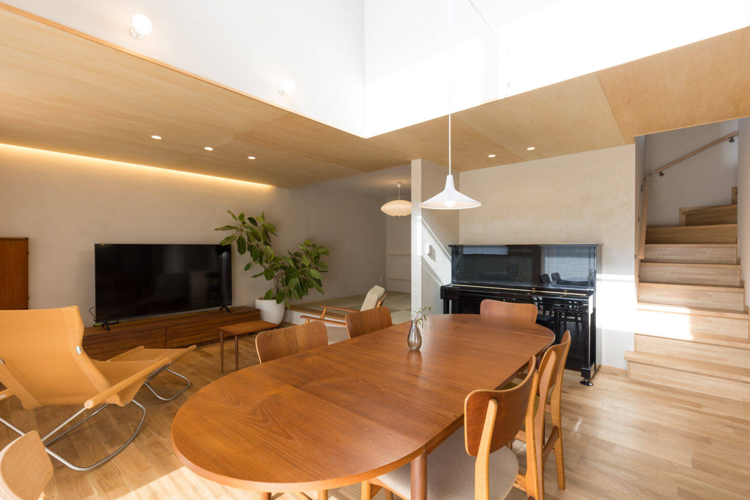 玄関からリビングまで室内にドアのない開放的な間取り