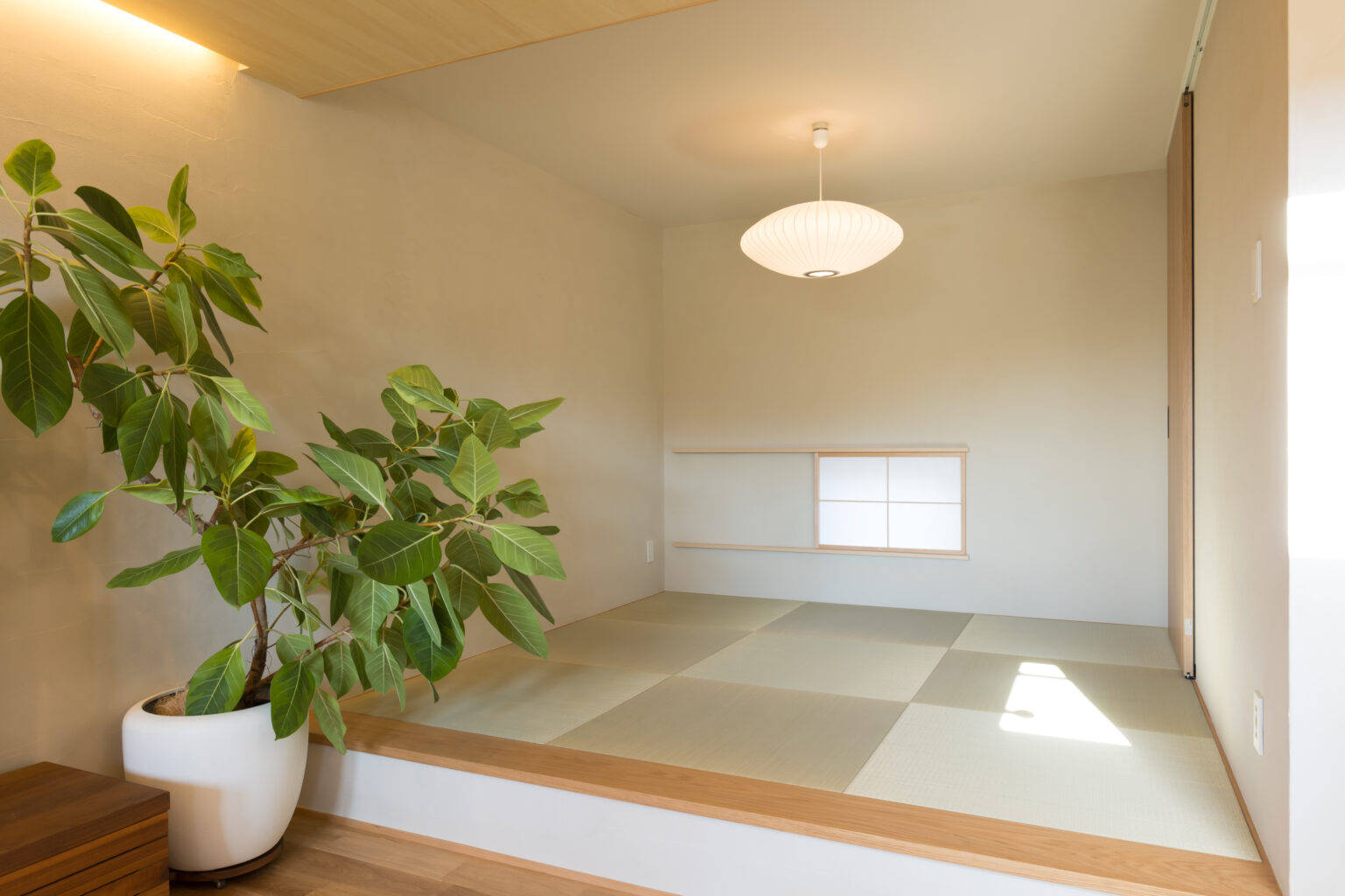 シナベニア貼の天井、壁は漆喰塗。