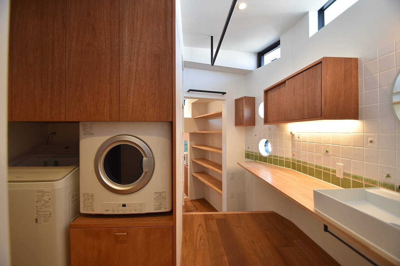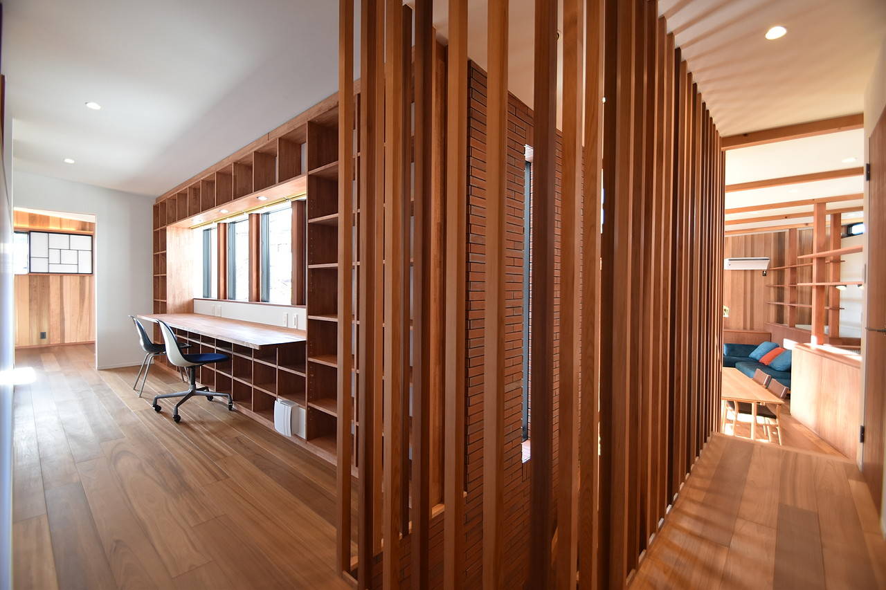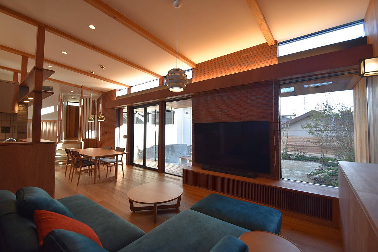 機能的には地下の外部空間を持つ混構造でありながら高気密高断熱仕様として、Ua値0.43w/(m2K)、C値0.74cm2/m2の数値を確保しています。また冷暖房設備には床下エアコンを採用して外部地下のある個所以外の1階の床下空間が途切れないようにしています。換気設備は天井裏がほとんど無いためダクトレスの1種換気、せせらぎを採用しています。