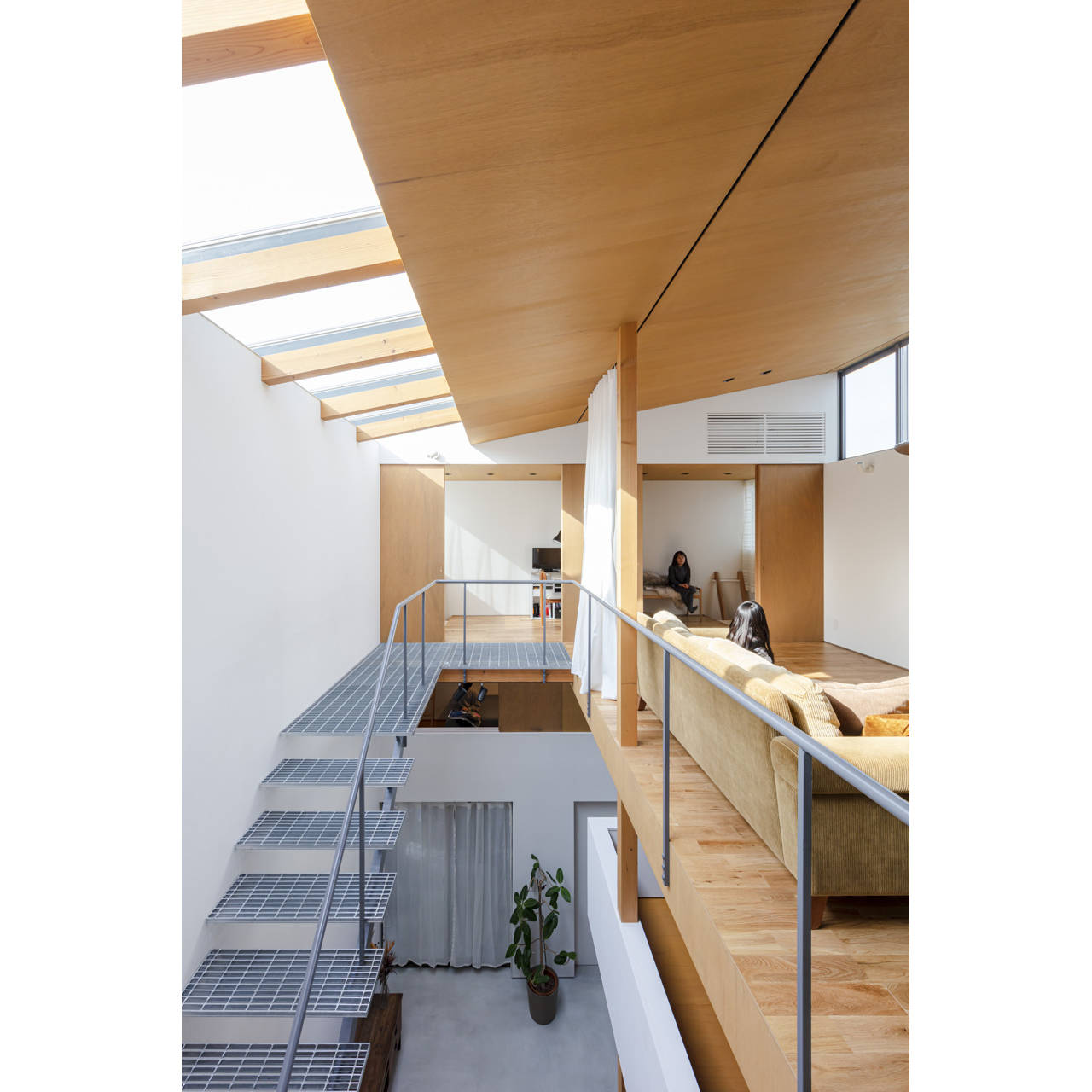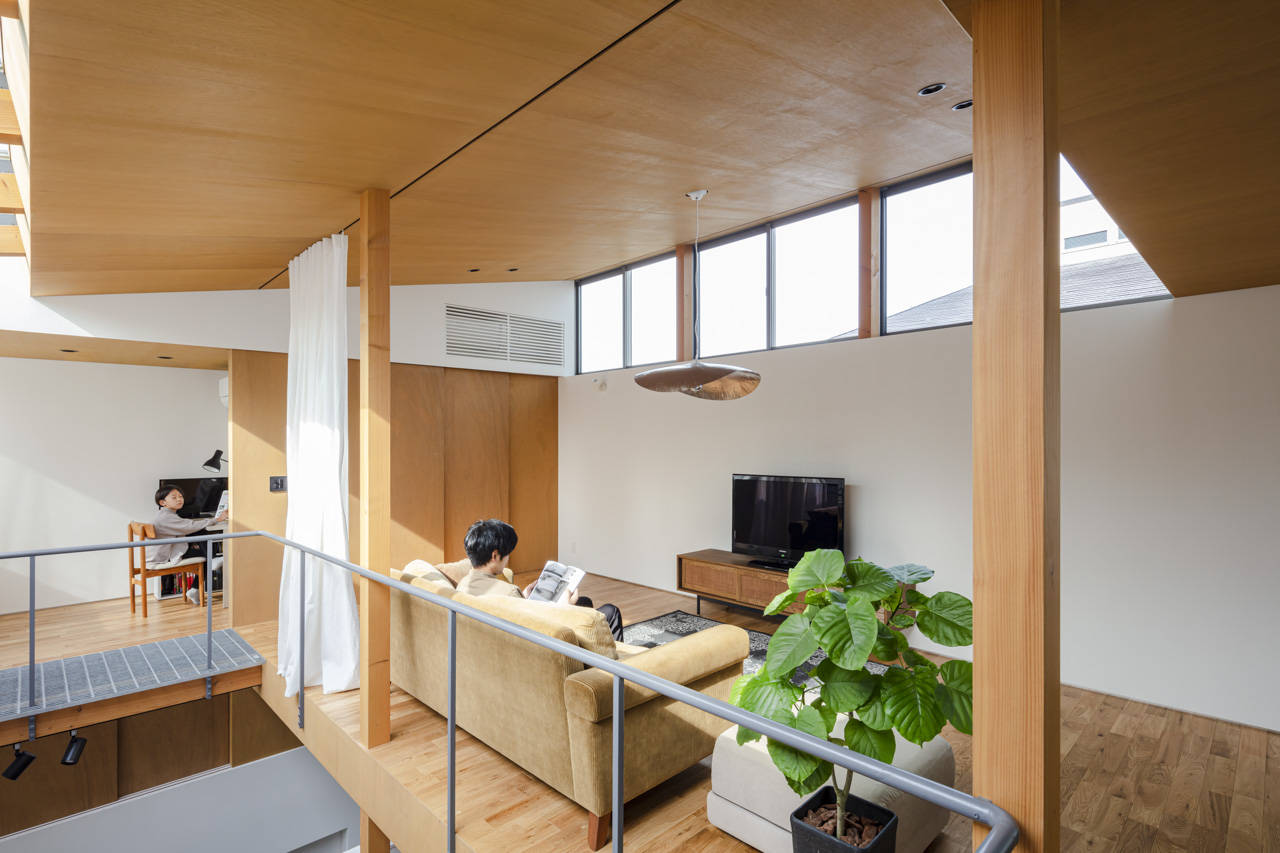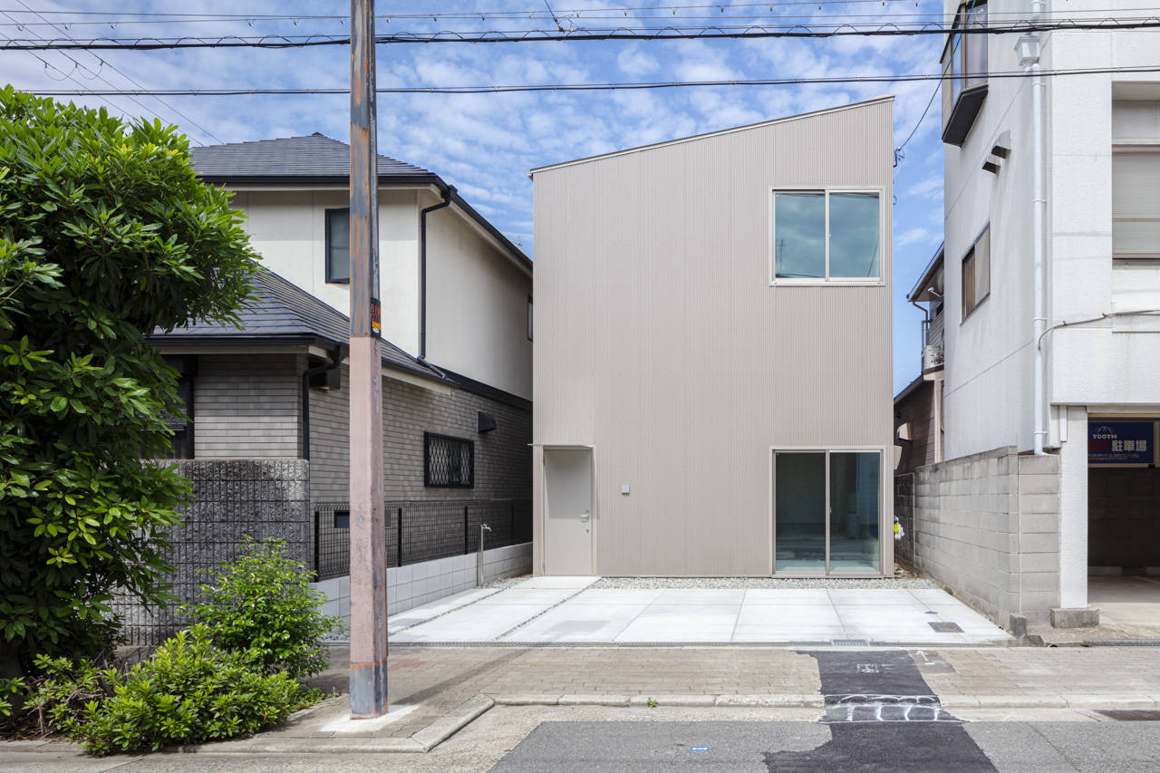 大阪市内の新旧の建物が建ち並ぶ住宅地に建つ4人家族のための住宅です。敷地周辺の住宅を観察すると、ゆったりとした広さの土地に古くから建つ2階建て住宅と、そうした土地を細分化した分譲地に新たに建てられた、間口の狭い3階建て住宅が見受けられます。
