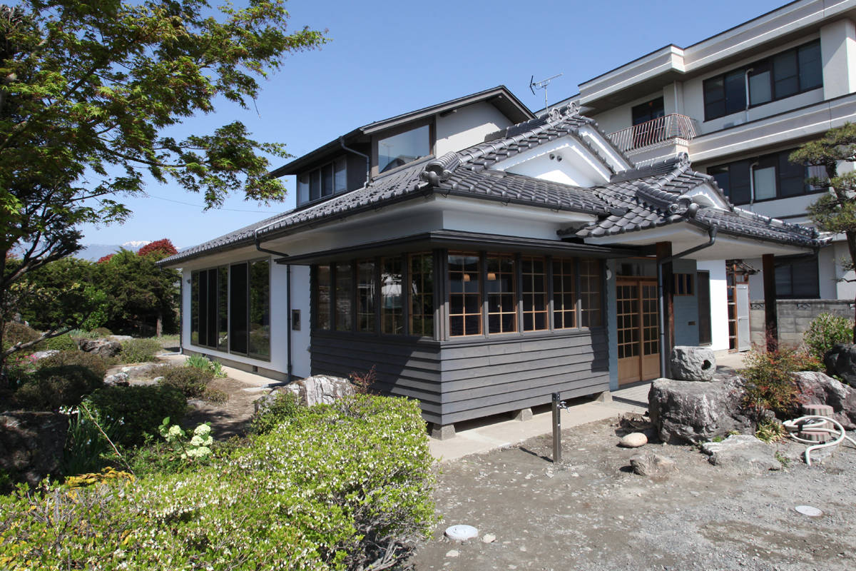 建物は2階屋根まで入母屋造りになっており、耐震診断での性能は極めて低かった。そこで2階を減築しつつ重心を下げて外観と同時に耐震のバランスを改善した。また、視覚的にも耐震的にも軽くするために2階の屋根だけをカラーガルバリウム鋼板葺きにしている。