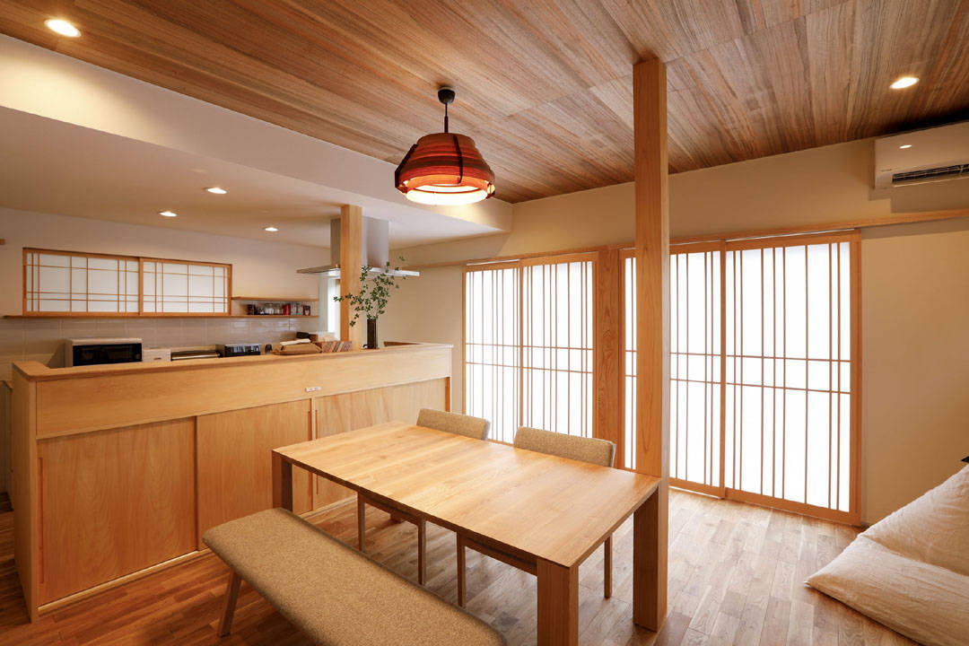 既存住宅の減築リノベーションです。基礎、柱梁等の骨組みを残しプランや設備、耐震性、断熱環境を一新しています。