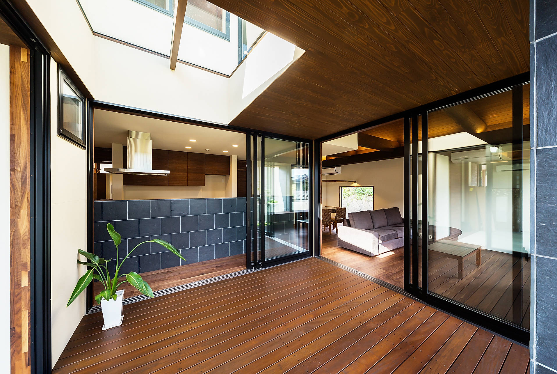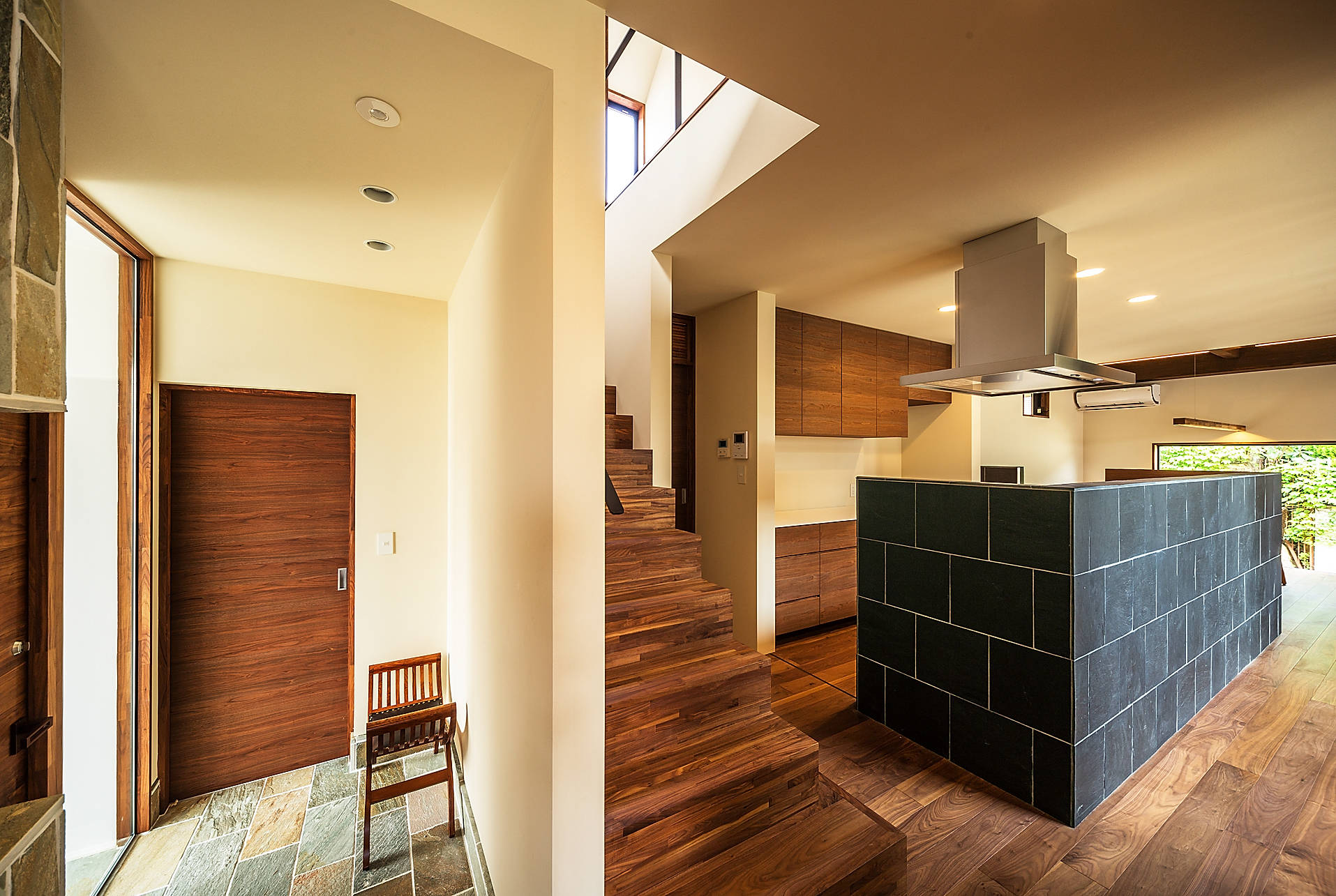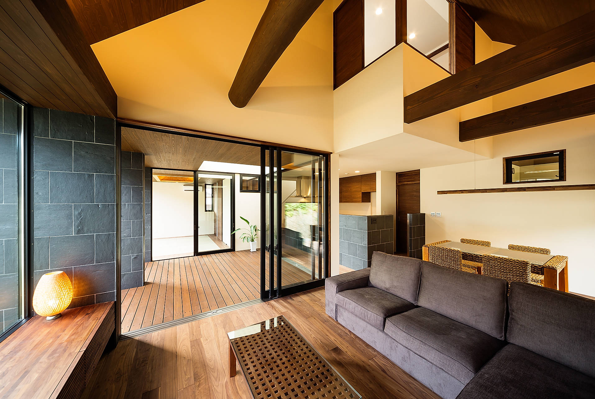 バリリゾートのような癒しのある暮らしを求められ、バリ文化の象徴でもある三角形の大屋根を持つその形状から『haus-ubud』と名づけました。こだわり抜いた素材を使用した内外装でもリゾート感を演出しており日本とバリの文化が融合した住宅となっています。
