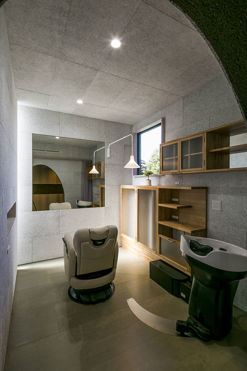土地区画整理中につき周囲の景観変化が予測困難な駅前の敷地において、オーナーが望む「髪の病院のような美容室らしくない隠れ家的な美容室」と「オーナー家族の住まい」のプライバシーをいかに守るか?が主なテーマとなりました。