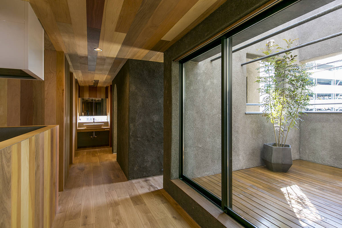 4本の塔は、その重厚な外皮により内部の個の空間に静をもたらし、自身が砦となることで背後の共有空間には適度なブラインド効果をもたらします。島を守るが如く立ち並ぶモアイ像のような列塔のファサードは、周囲の視線や騒音を遮り、塔と塔との隙間部分で光や風や景色を適度にフィルタリングするバッファー(緩衝装置)のような存在です。