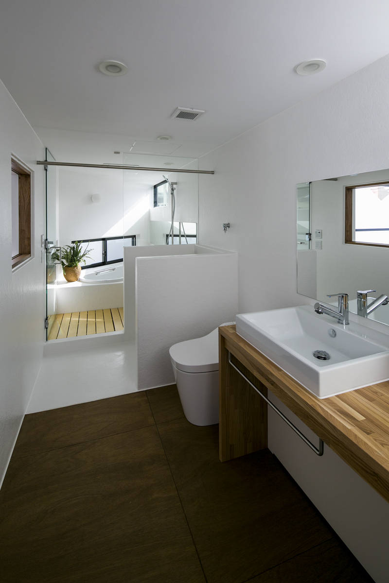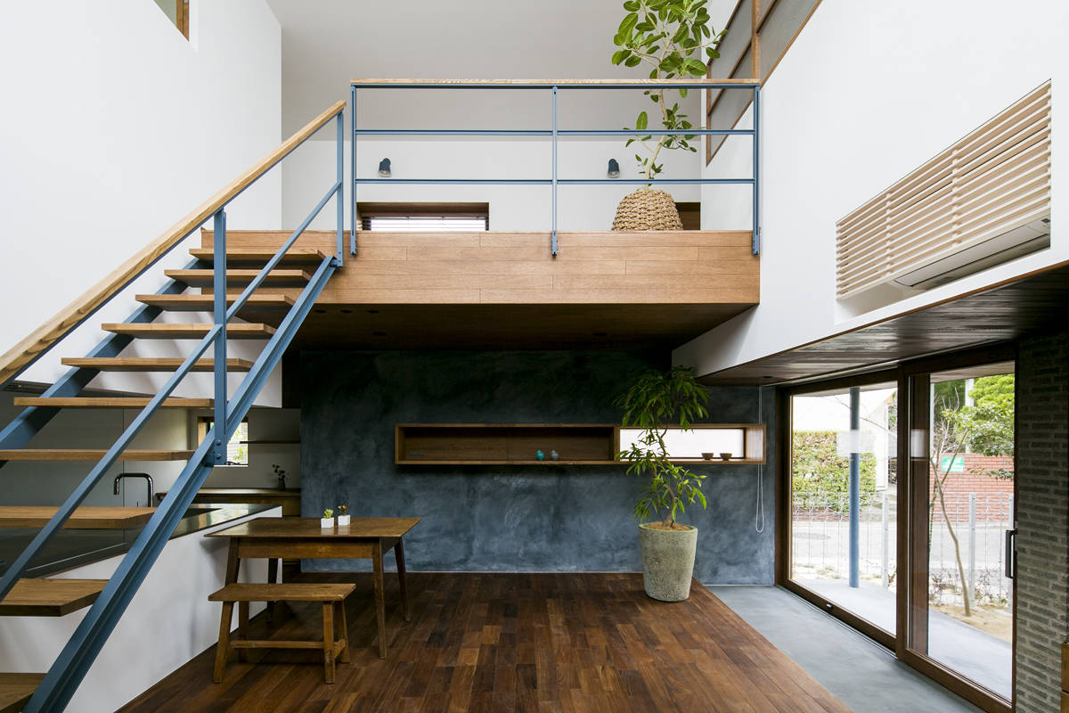 隣地建物がせまっている為、南面と東面からの採光が難しい敷地の短所を補うよう、建物のまんなかに設けた吹抜を軸に大きなワンルームのような簡潔で自由な空間を目指しました。