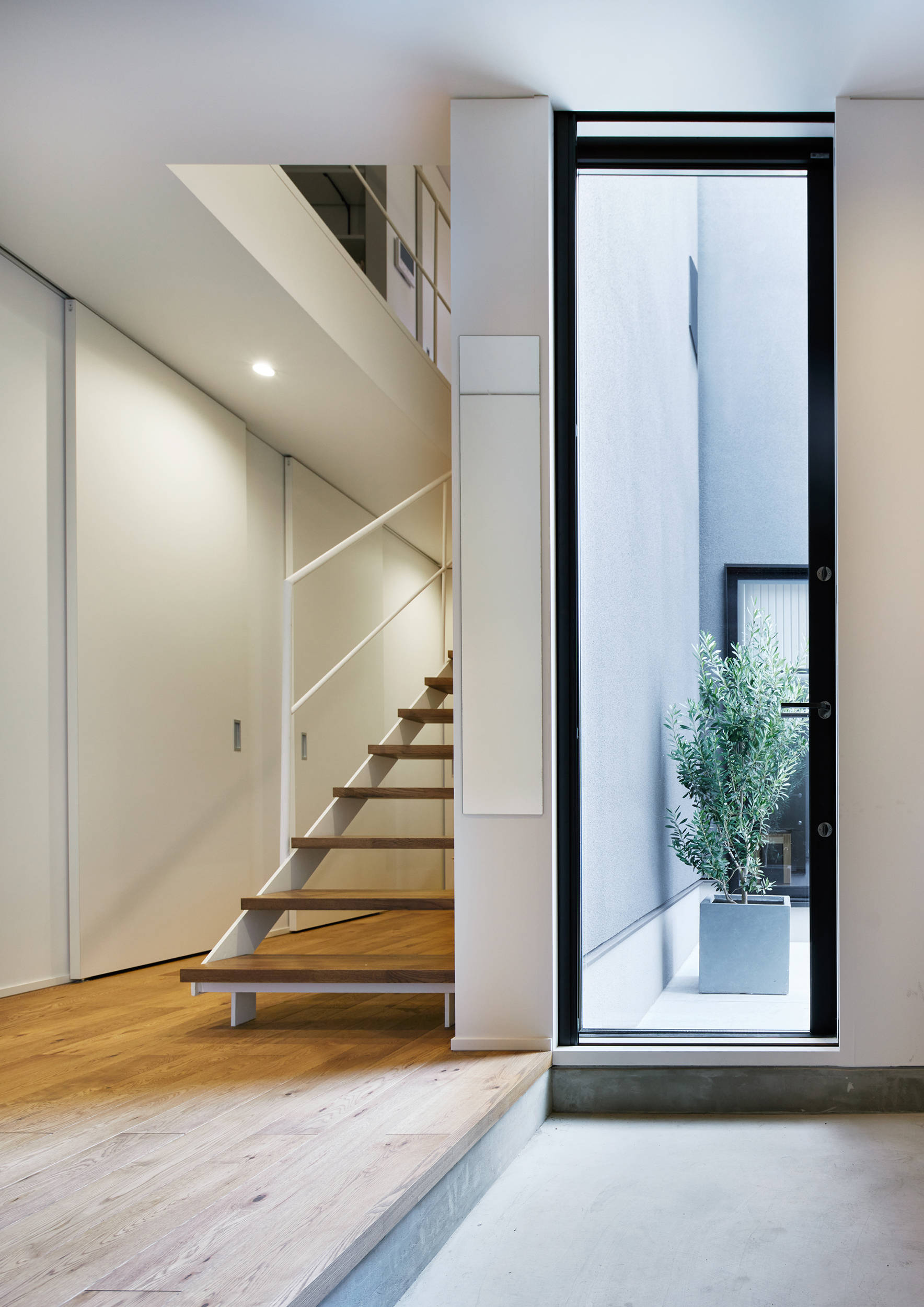 リビング、玄関から直接出られる中庭はテントを張ったり、プールを出したり、覗かれることのない場所で寛げる内部空間の延長としても機能する。