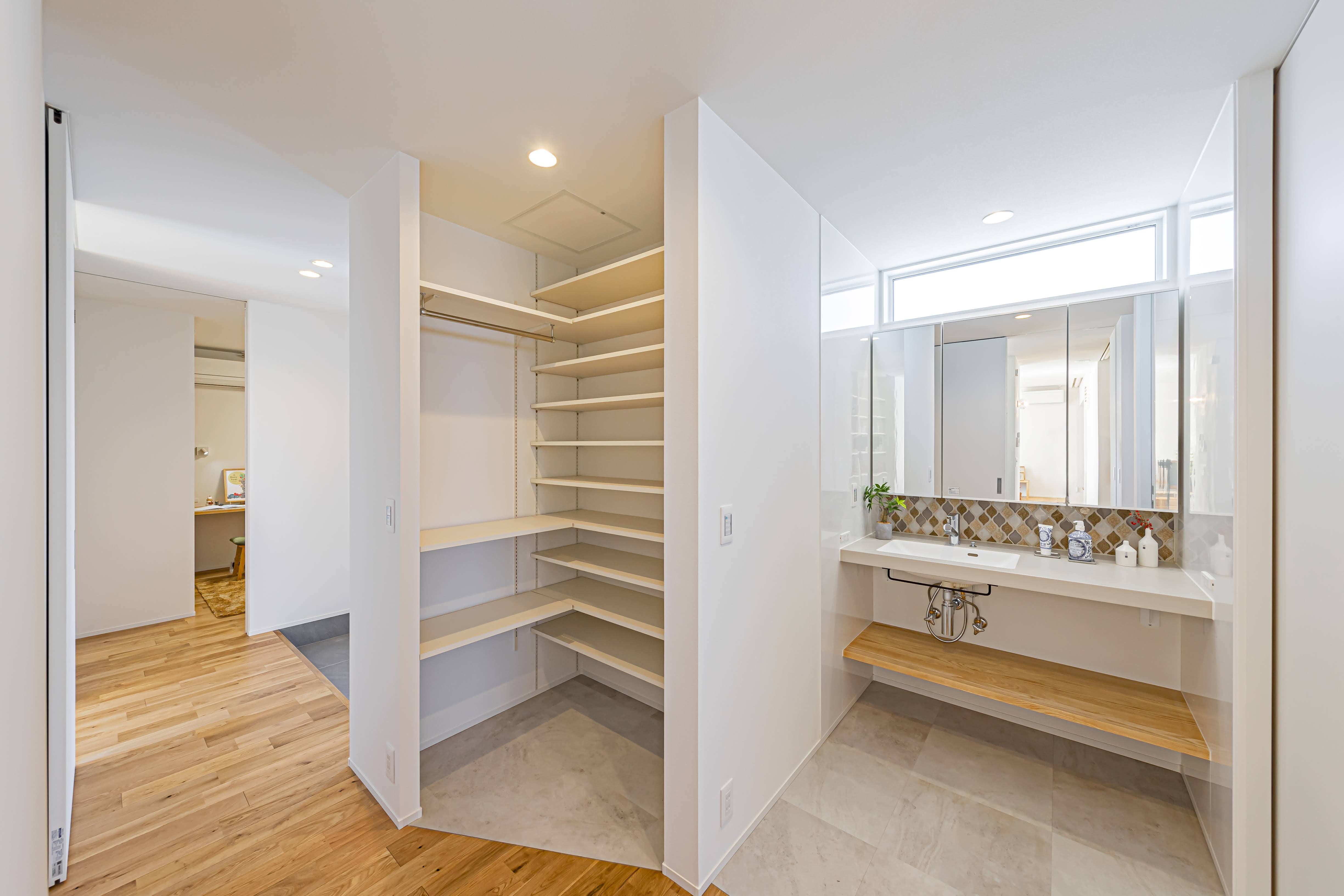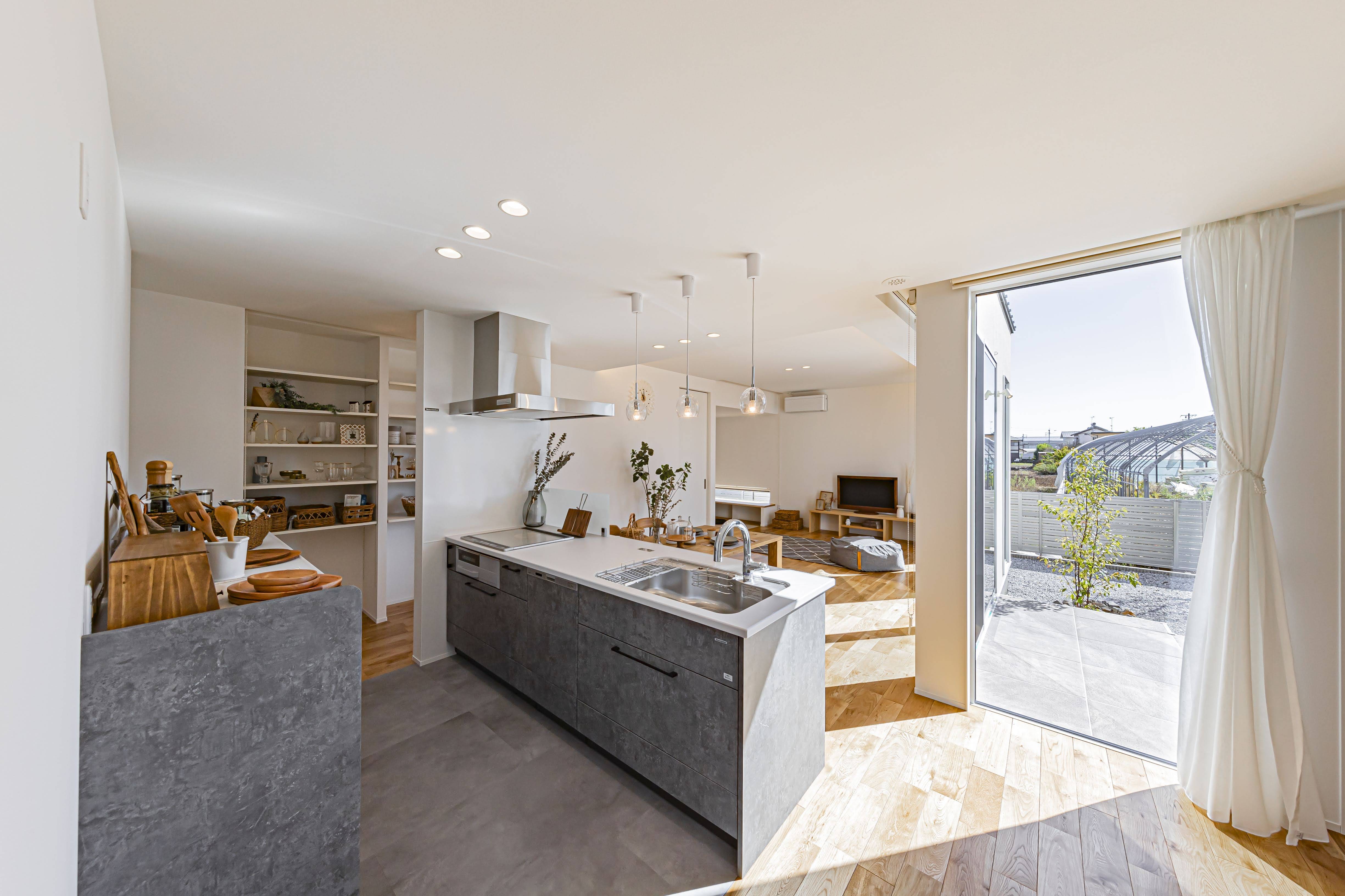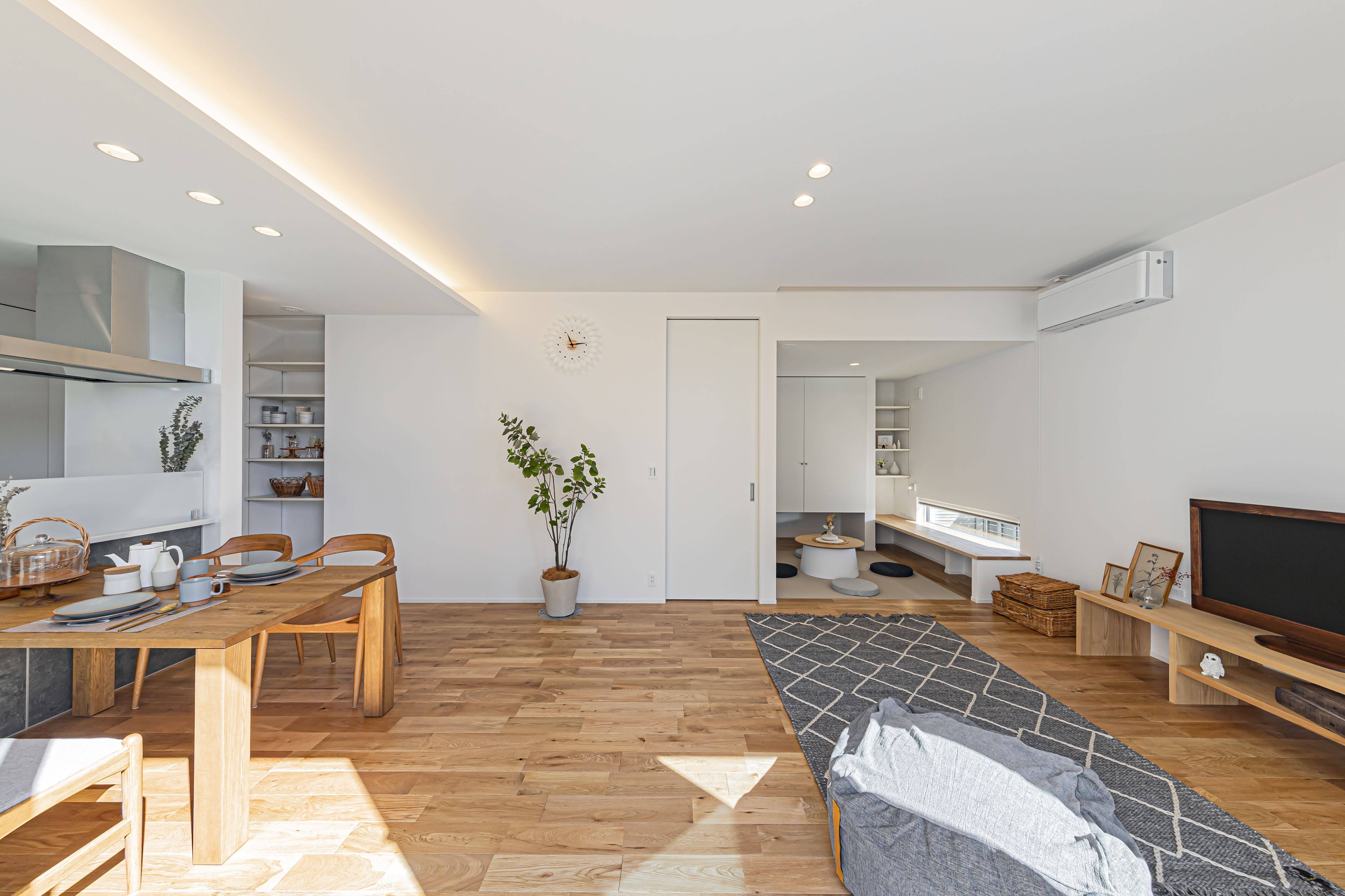 リビングを中心に北東側を閉じ、南の環境へ開くことで緩やかにレイヤードされた空間が繋がっていく、安心感と解放感の両立を獲得する住まいのご提案です。