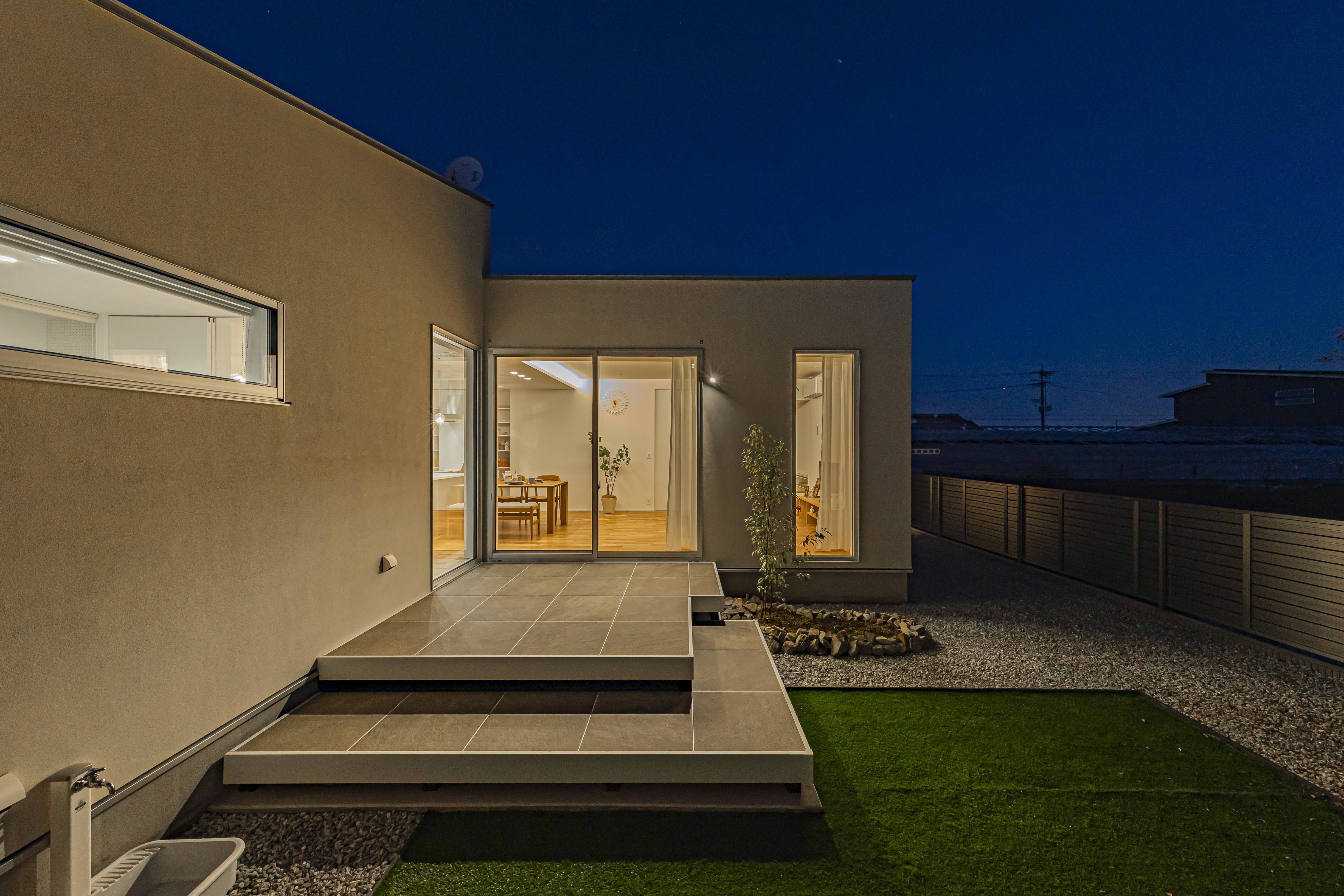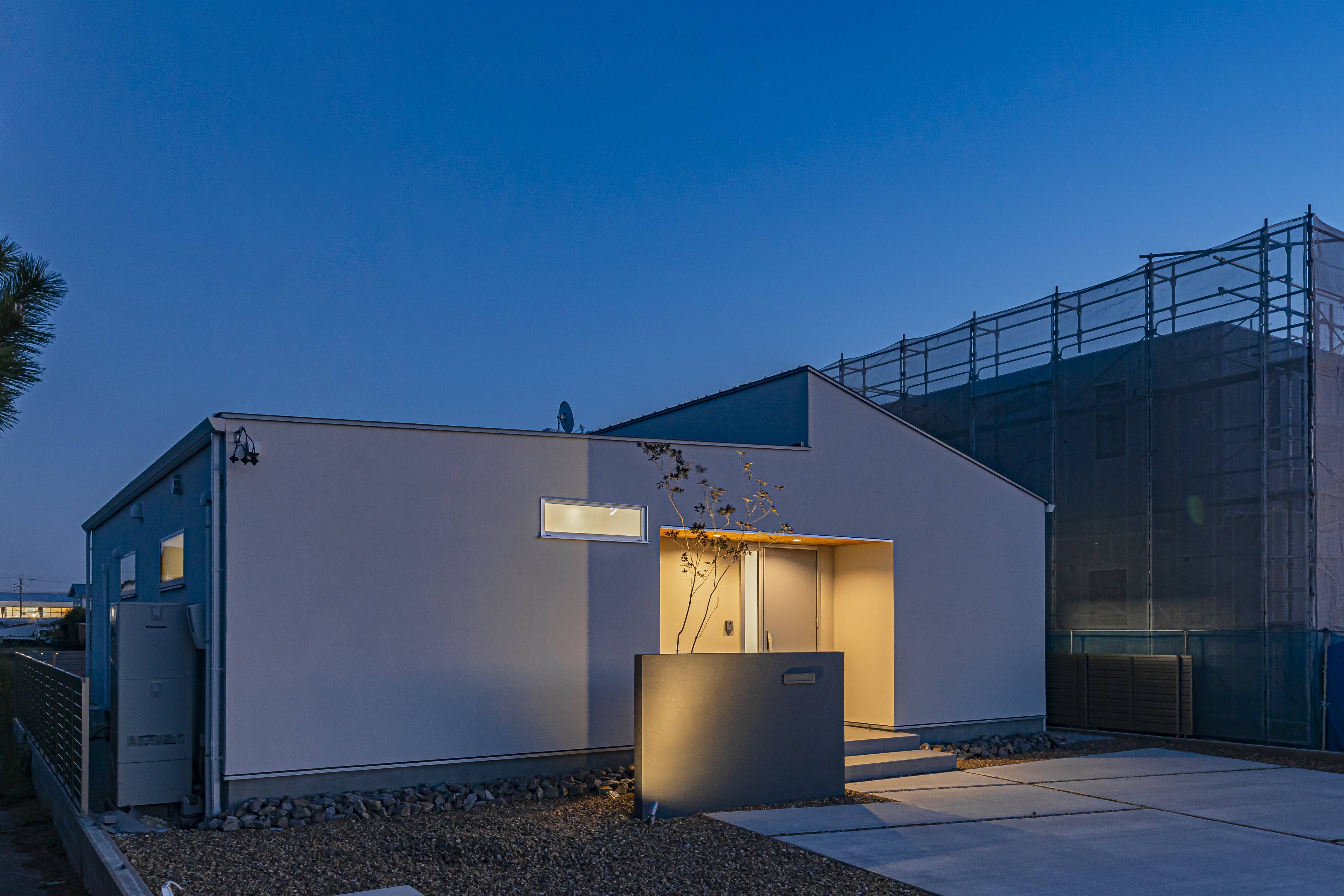 北東側の環境に配慮し、明確に開きたい方位を定めパブリックな空間とプライベートな空間をレイヤー分けしながら配置することで端正な外観と室内からの開放感のある暮らしを計画しました。リビングには二つの余白スペースがそっと寄り添い、家族のライフステージの変化に備えています。