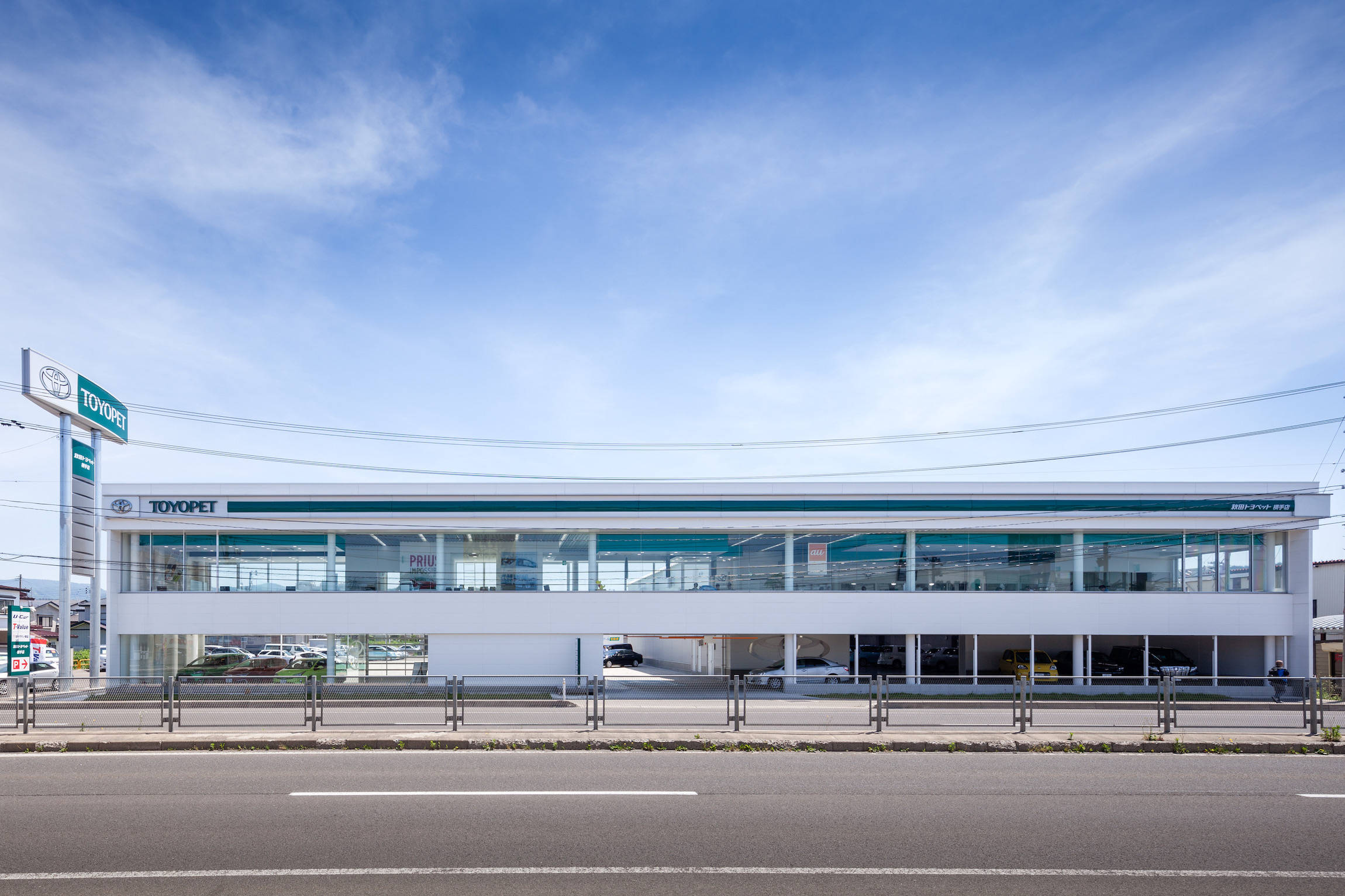 道路沿いに長いファサードを作り、街並みに貢献するという大枠はカローラと同じですが、デザインワードを少しシャープにして秋田トヨペットのブランドイメージを作ることを考えました。