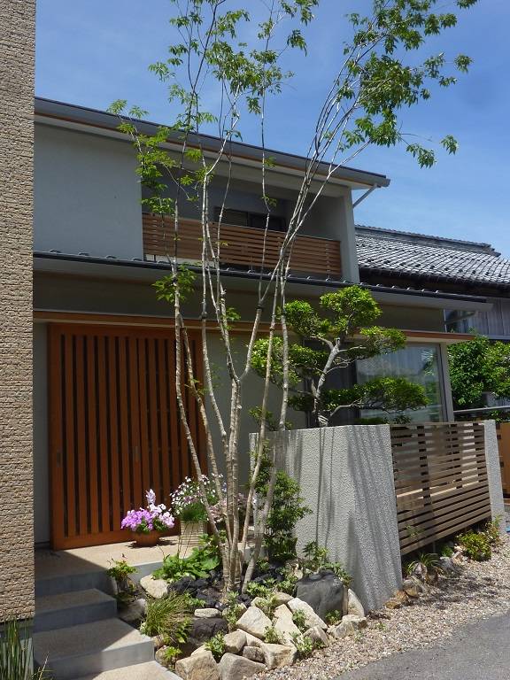 中山道の宿場町だった岐阜県垂井町住宅街に建つ2世帯住宅の建替え計画。