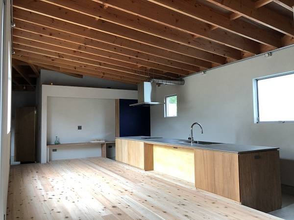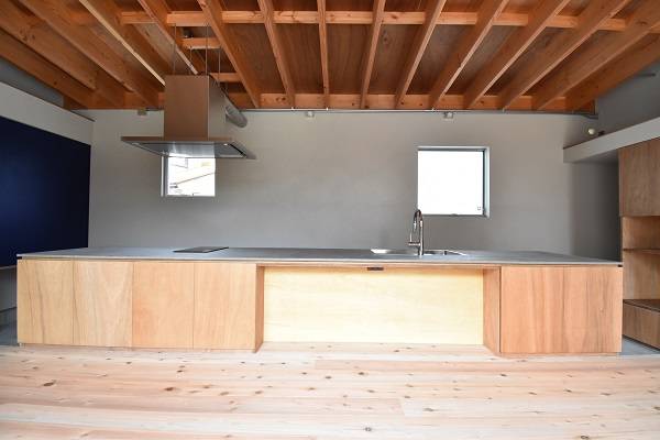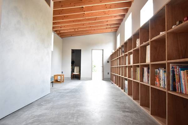 アトリエ部分は、設計事務所の業務や作品作りを行う他、近所の子どもたちと図工を楽しむ時間を開催するなど色々な人たちが集まる場になりますが、それ以外の時間帯は、図書コーナーや子どもの勉強スペースとして利用することができます。住宅の中心にあるキッチンは、食卓であり、カフェであり、打ち合わせスペースや休憩スペースとしても利用することができます。家族と、訪れた人たちと、みんなで時間をかけて育てていきたい住宅です。