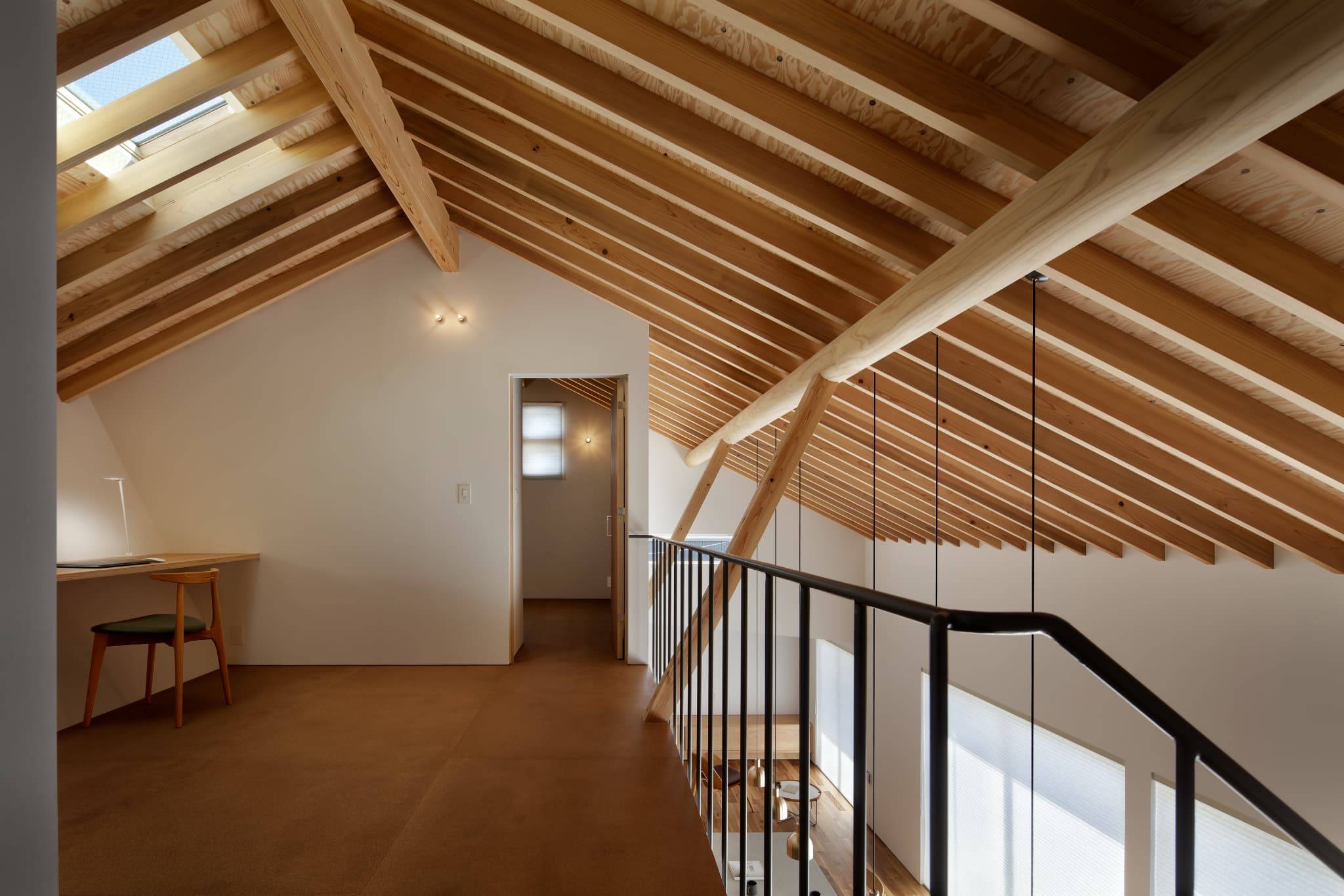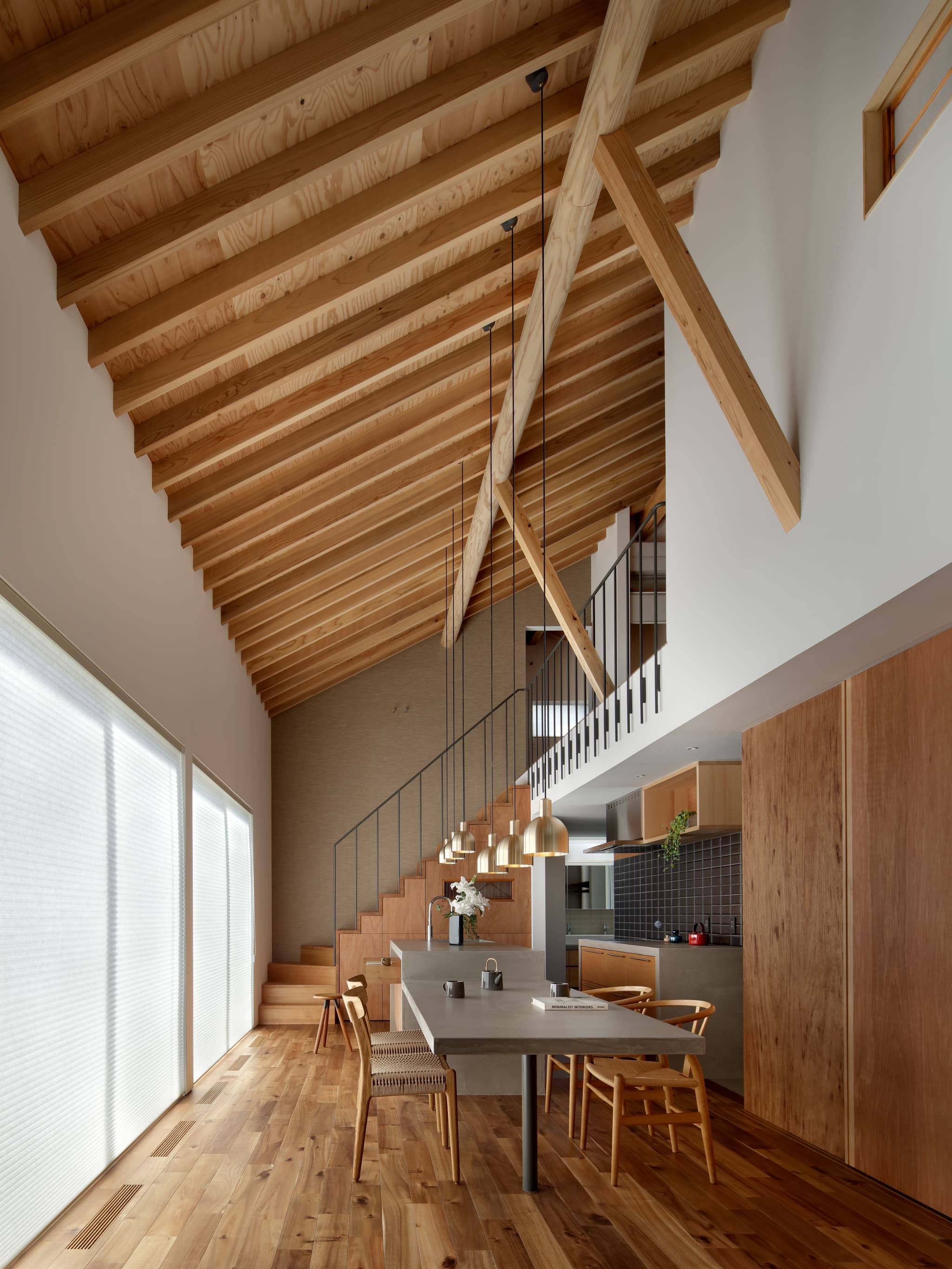 軒が連なる切妻屋根と、旧家屋で使われていた障子を組み込んだ開口部は、どこか懐かしさを感じさせます。