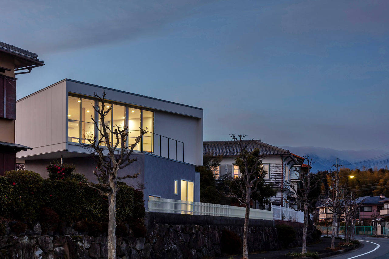 敷地は緩やかな丘にある住宅地で、目線を2階の高さまで上げると琵琶湖を見渡すことができる場所に位置していた。施主は長年滋賀で生活してきたご夫妻であり、琵琶湖を眺めながら暮らす家がコンセプトである。