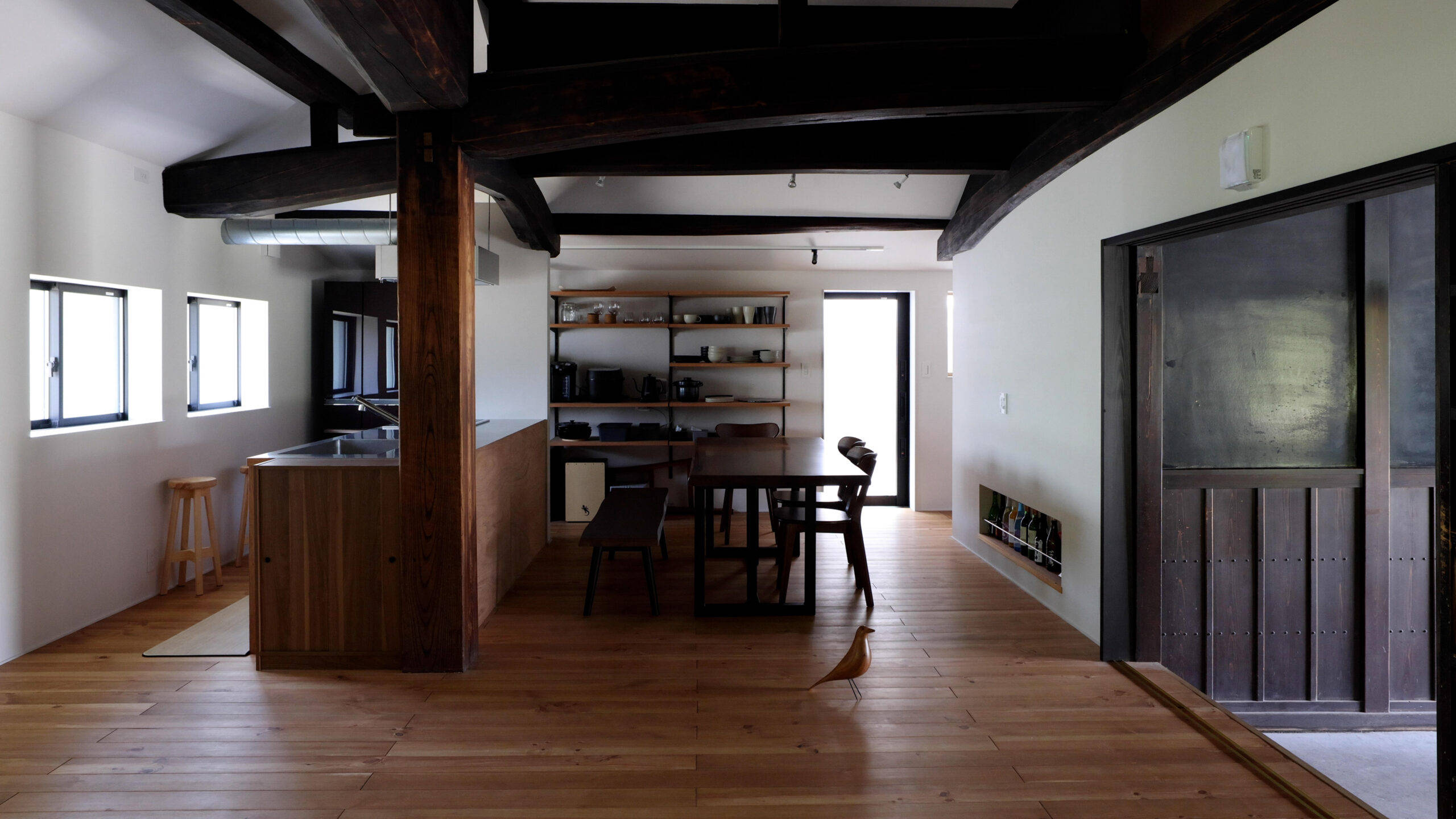 古き良き部分を生かし、キッチンや浴室などを整えると共に、外部と繋がる提供スペースを設け、地域の方々との交流場所となります。