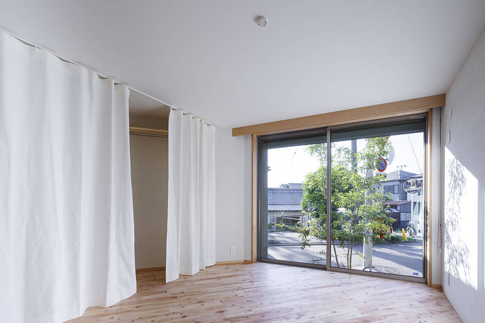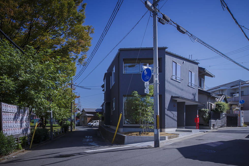 三角形の変形敷地という不安があるなか、施主様が選ばれた立地条件を最大限取り込む計画としました。また、角地という場所性から敷地境界を閉ざさず住まいとしての機能確保を課題とし、町並みにも配慮しました。