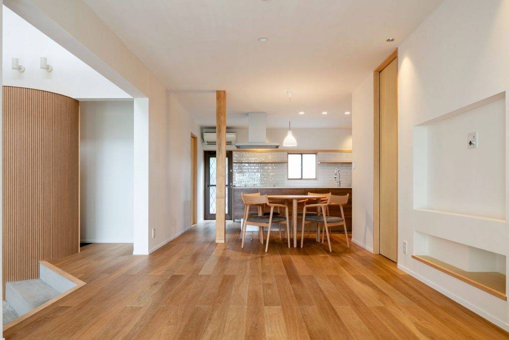 台風により破損した屋根の修繕や以前より抱えていた断熱不足による暑さ、寒さの対策などの機能面の修繕に加え、夫婦と子供(1人)の生活スタイルに合わせた間取りへと改修を行った。