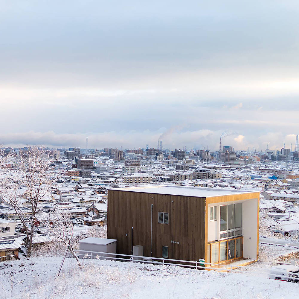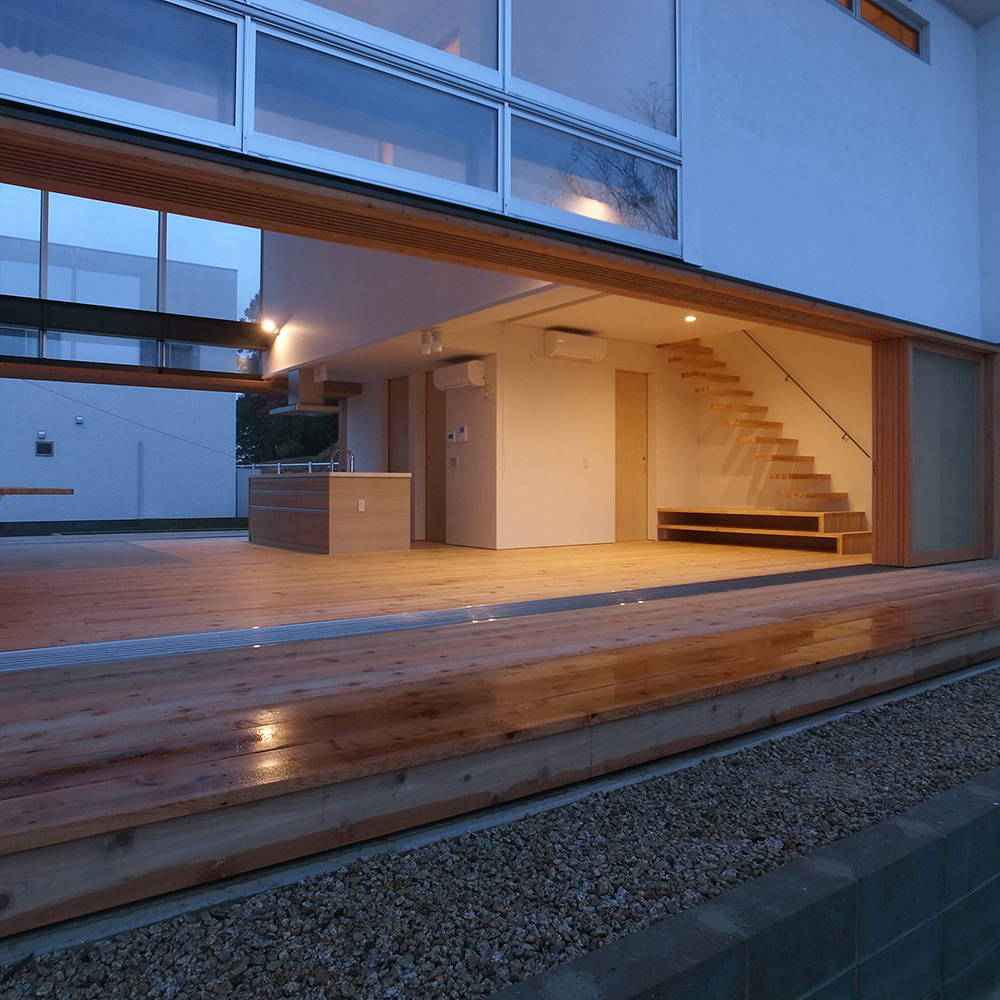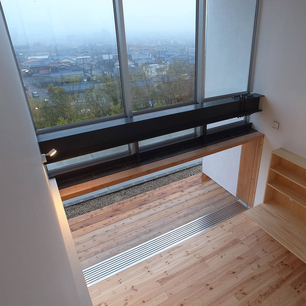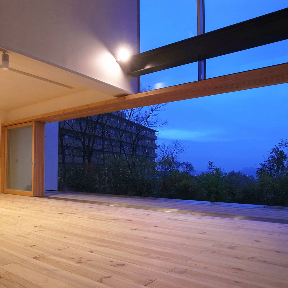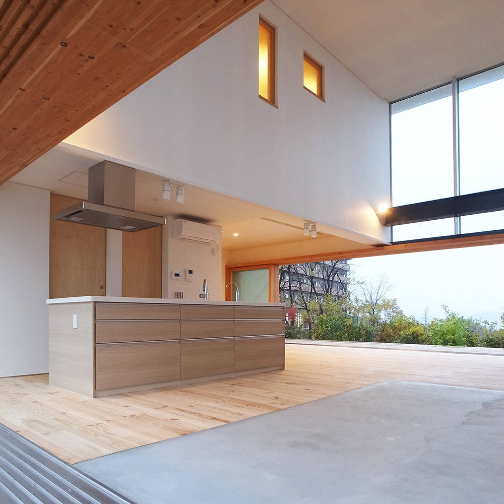 大きな開口がある建築を作ってほしいととのことで依頼があり、街が一望できる高台に街に向かって大きく開かられた家づくりです。