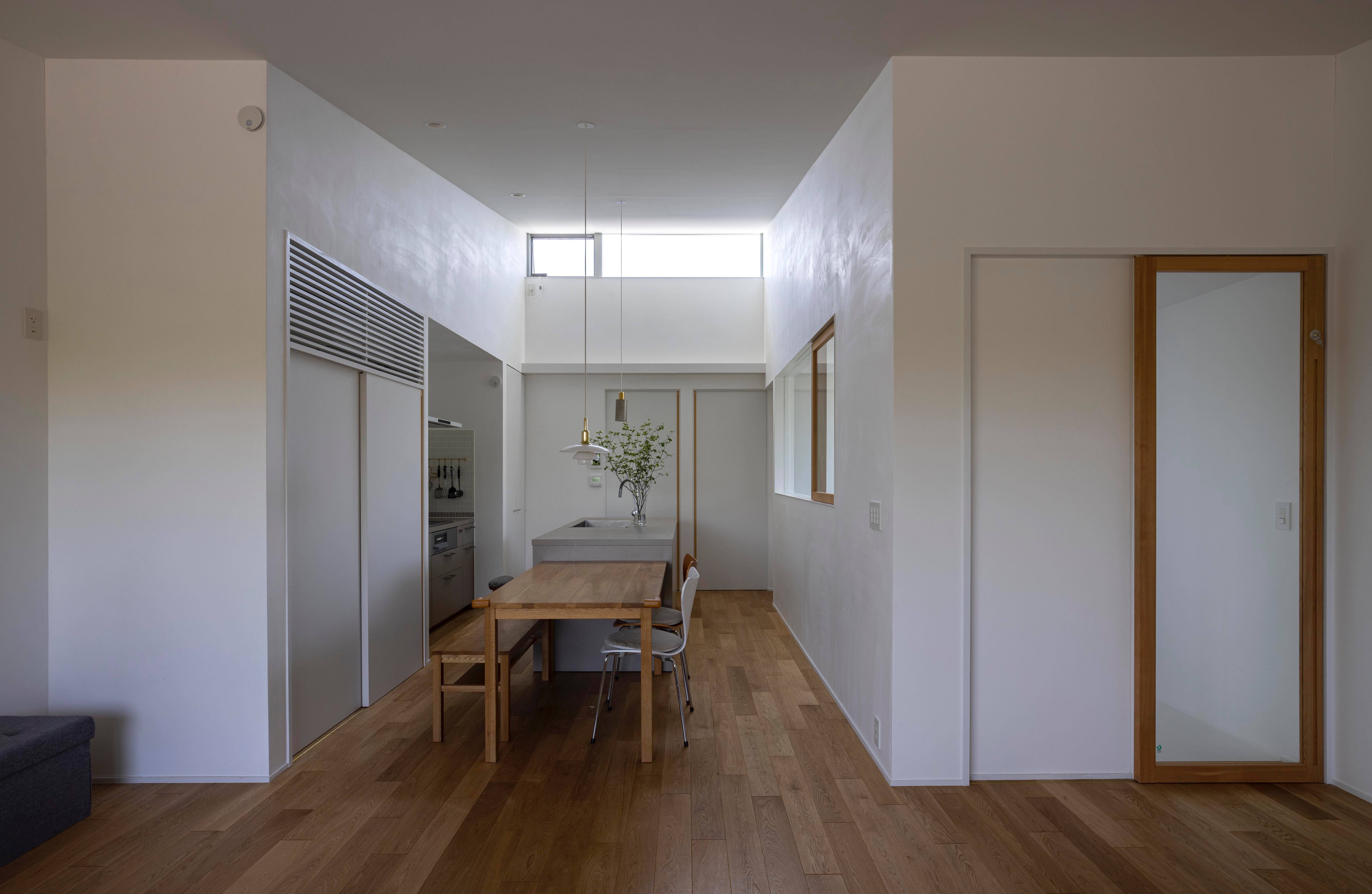 そこでキッチン、ダイニング、そしてリビングを連続させ、その先に広がる遠方の風景へ方向性を持たせるような空間構成としました。