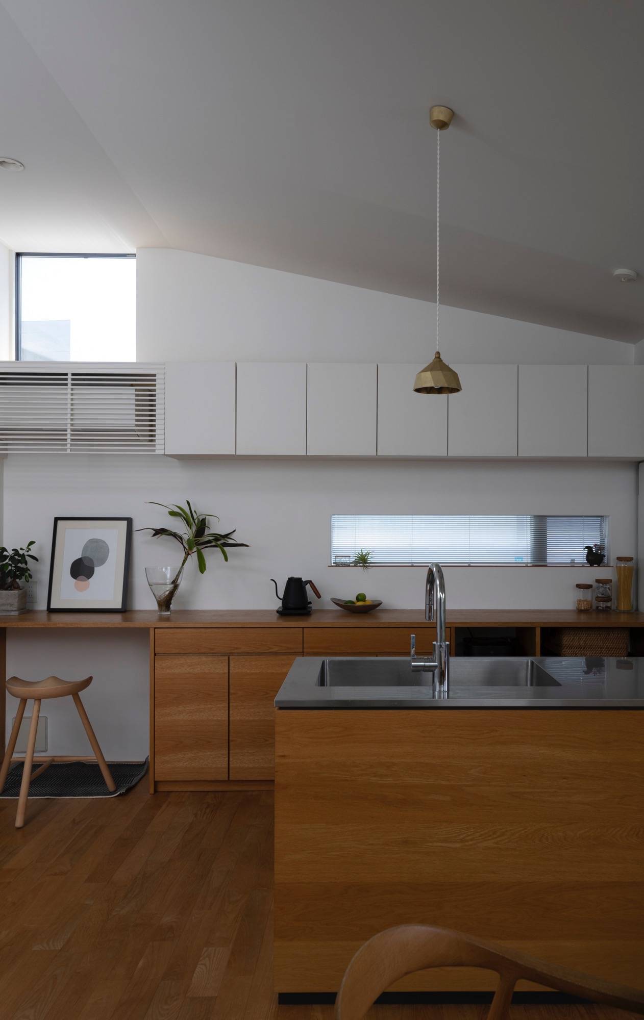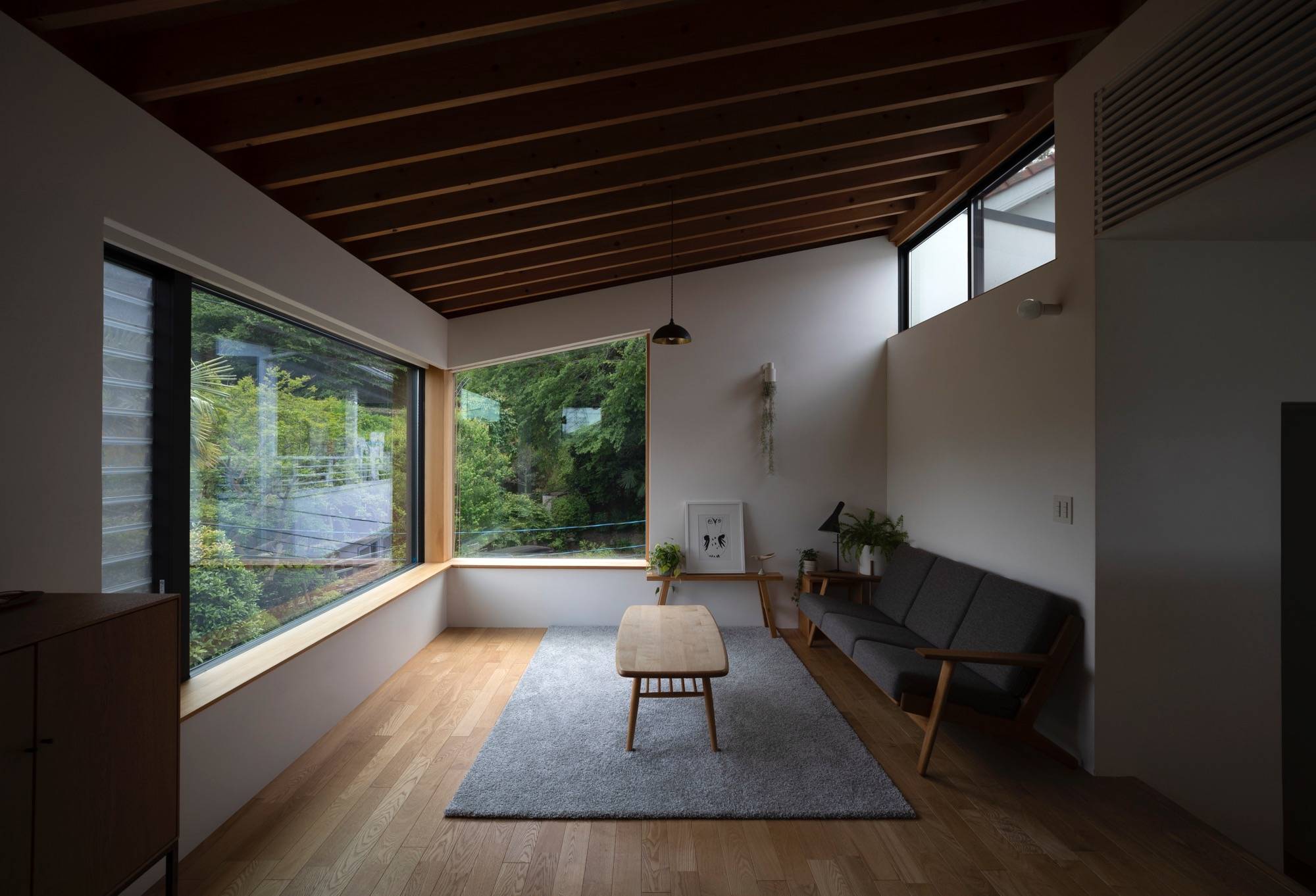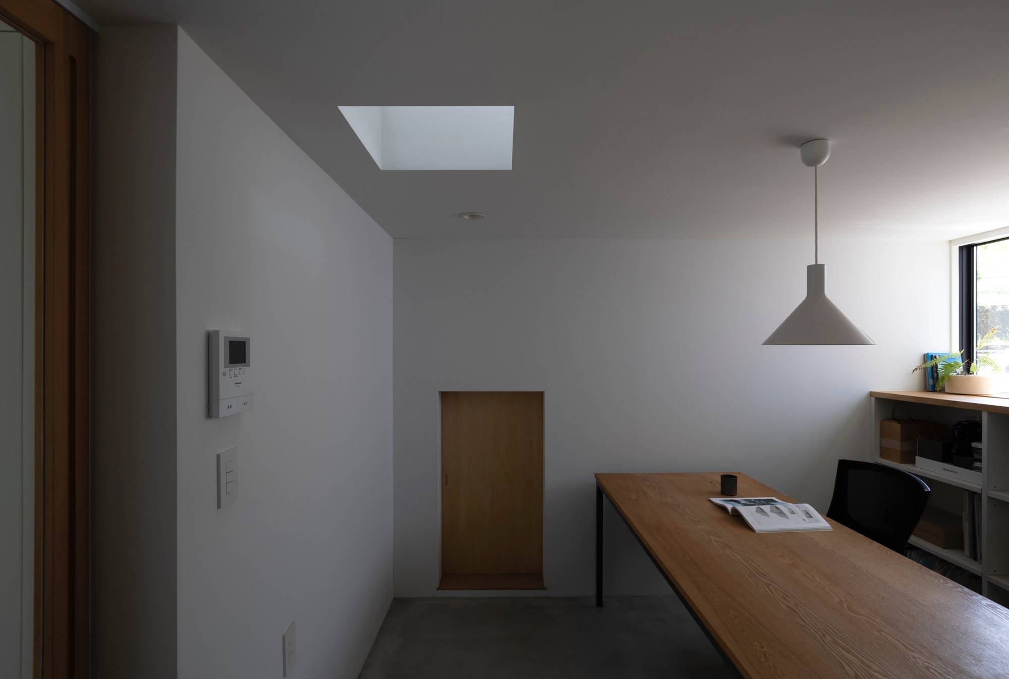 東京郊外の緑豊かな環境に建つ私の自宅です。 日々の暮らしを穏やかに過ごす事。その為に簡素でありながらも光、風を感じながら、心地よく過ごせるよう設計をしました。