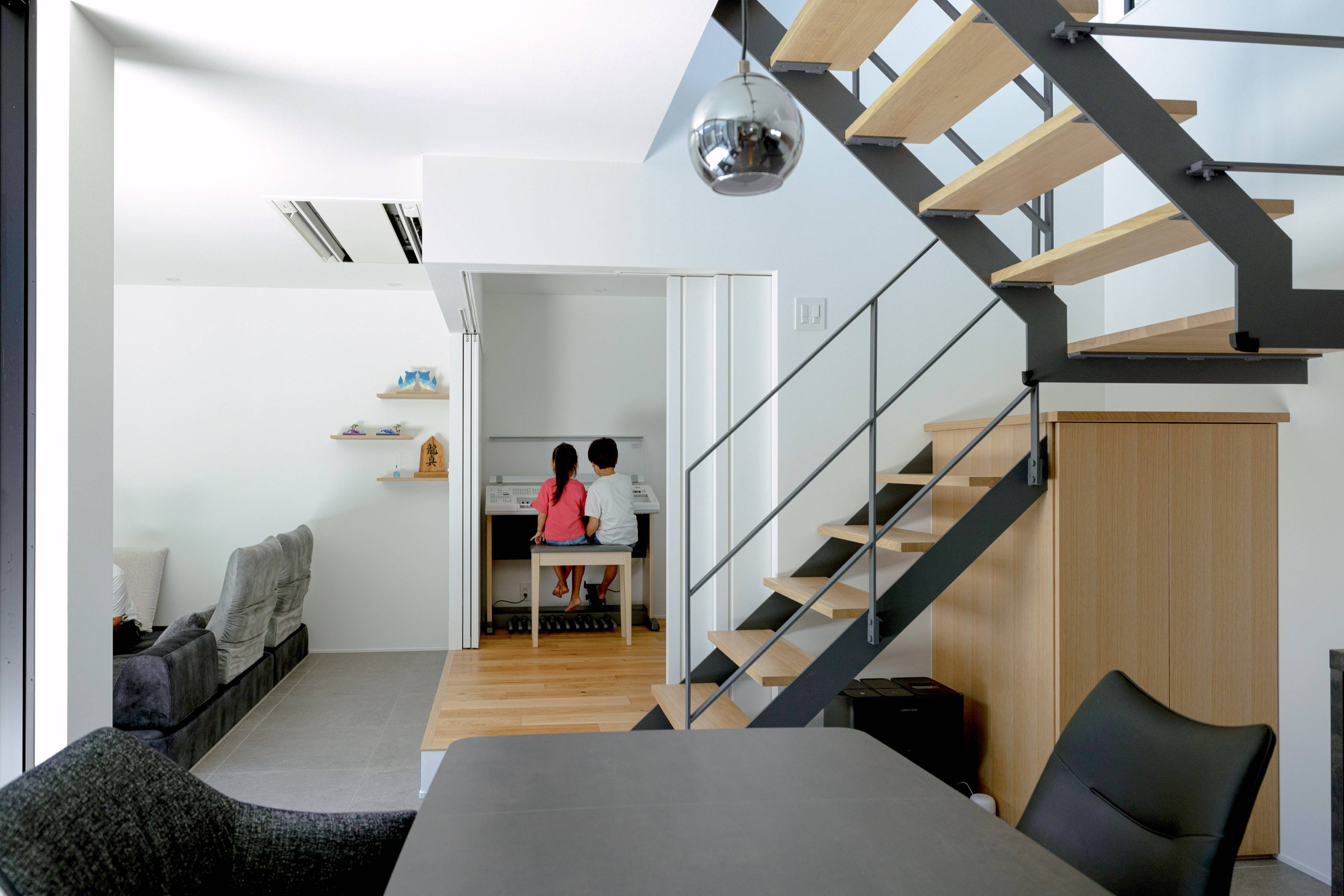 内に開く高低差のある家