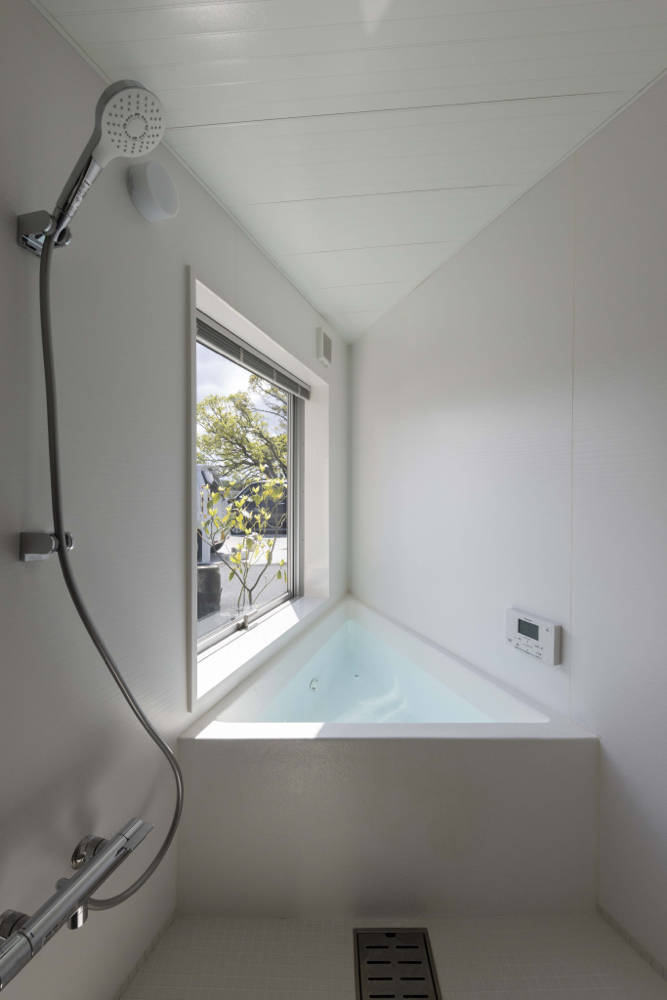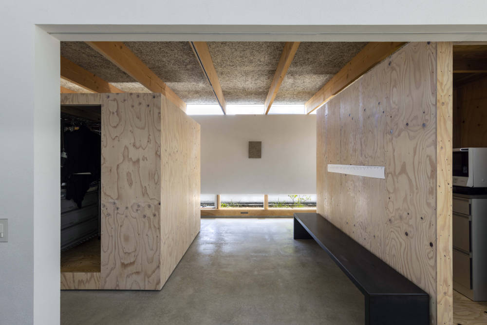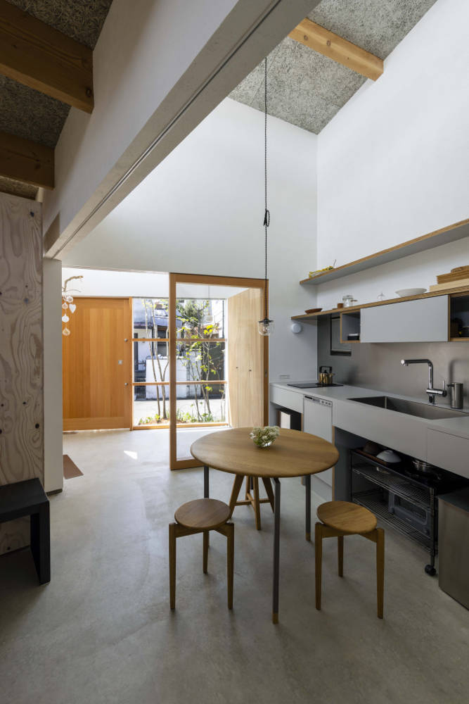 道も狭く密集した住宅地の中でプライバシーを確保しつつ、柔らかな光に包まれた空間となっている。