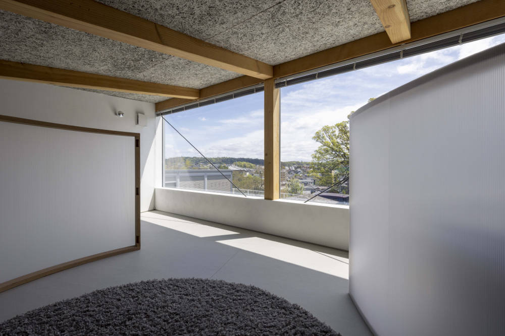 大きなワンルーム空間の中に可動式のボックスを二つ設けることで、可変性を持たせたプランとなっている。Photo : Shigeo Ogawa
