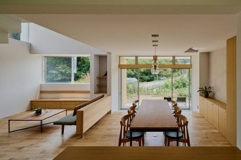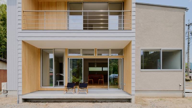 田園風景の中にある木造2階建の一戸建て住宅。土間空間・大きな窓・吹抜が魅力。周辺環境を生かした伸び伸びした住まいです。