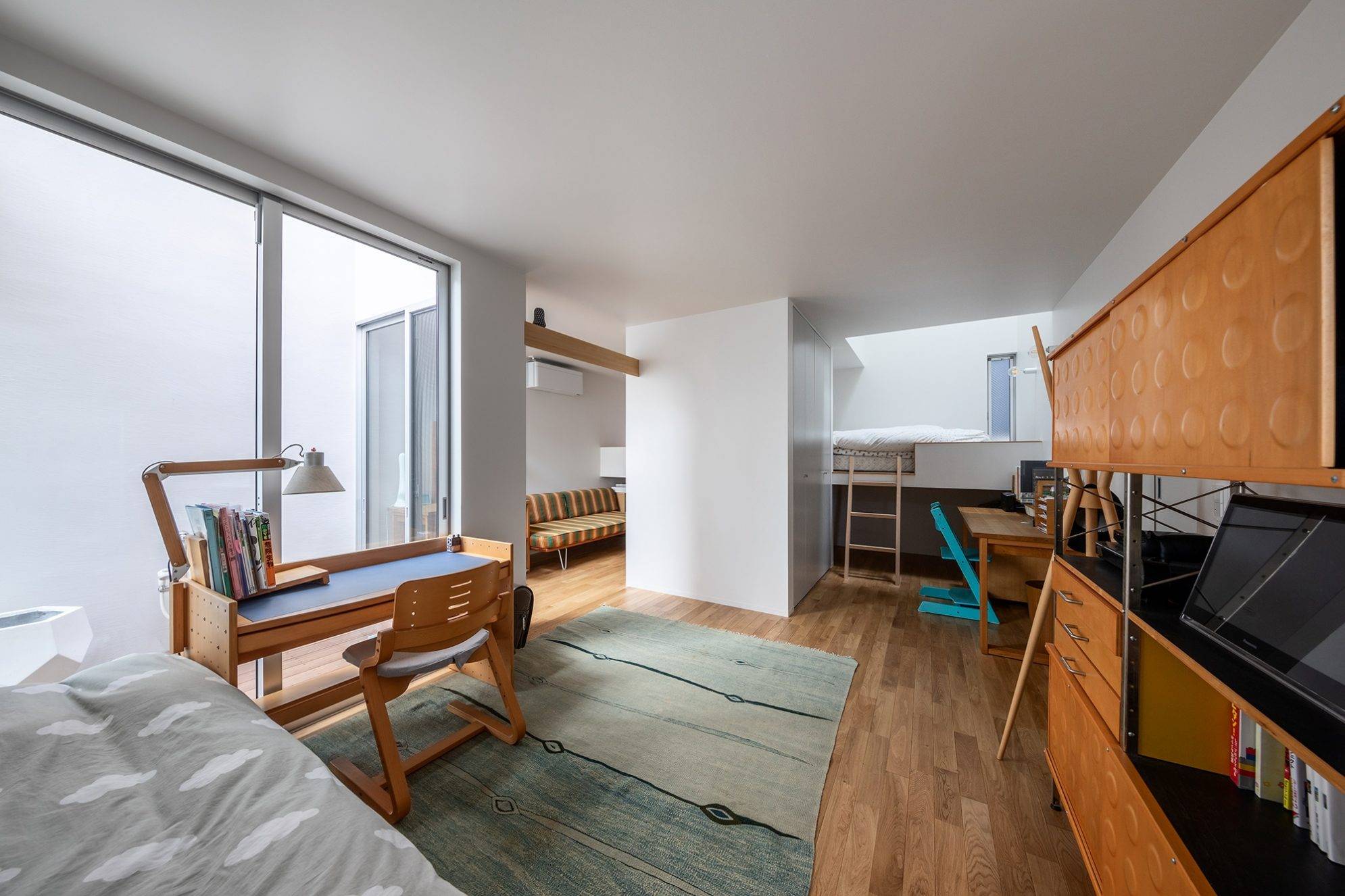 また、ボリューム同志のずれや外室越しに街の風景や空などを身近に感じることで周辺環境とのつながりを感じることが出来ます。