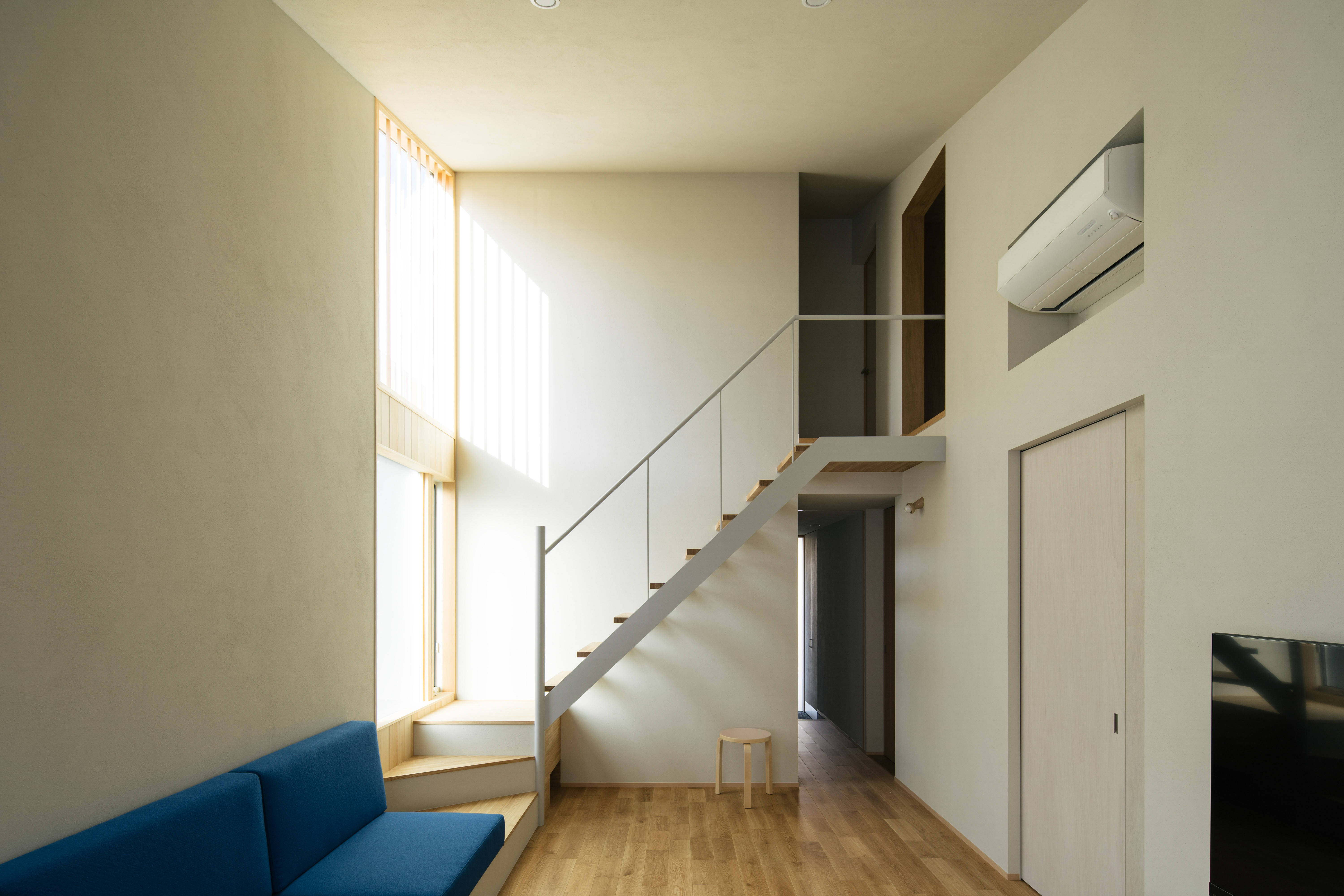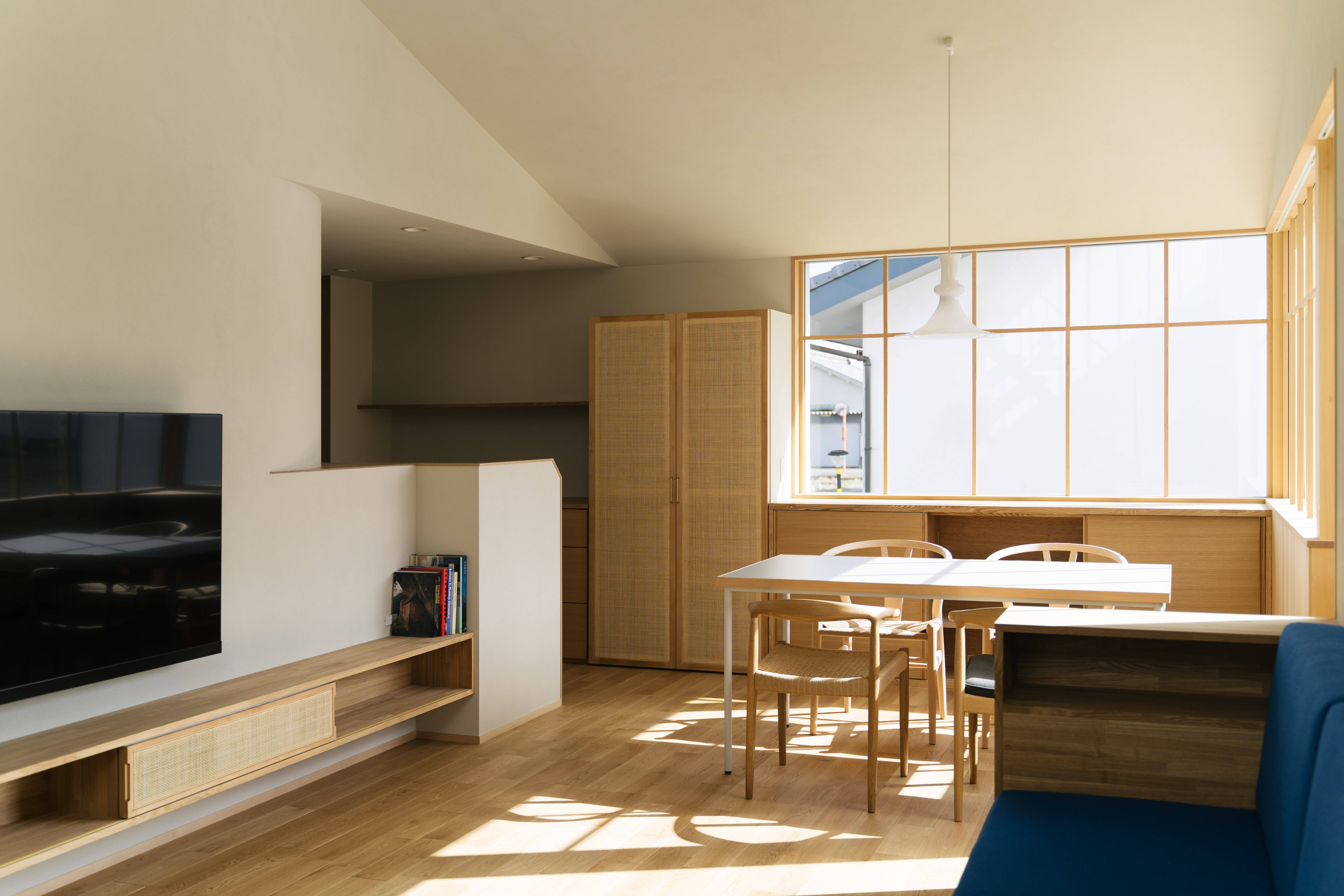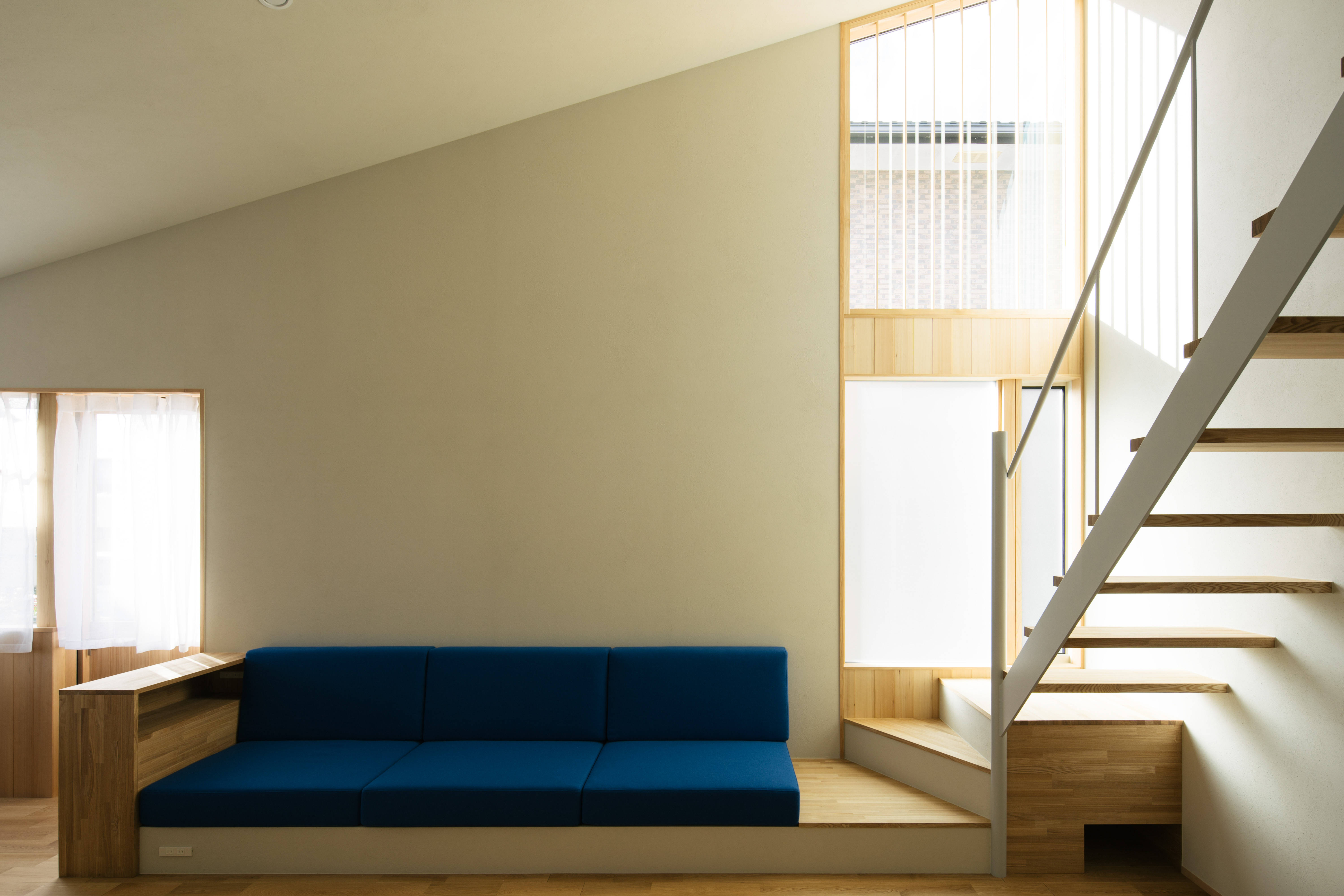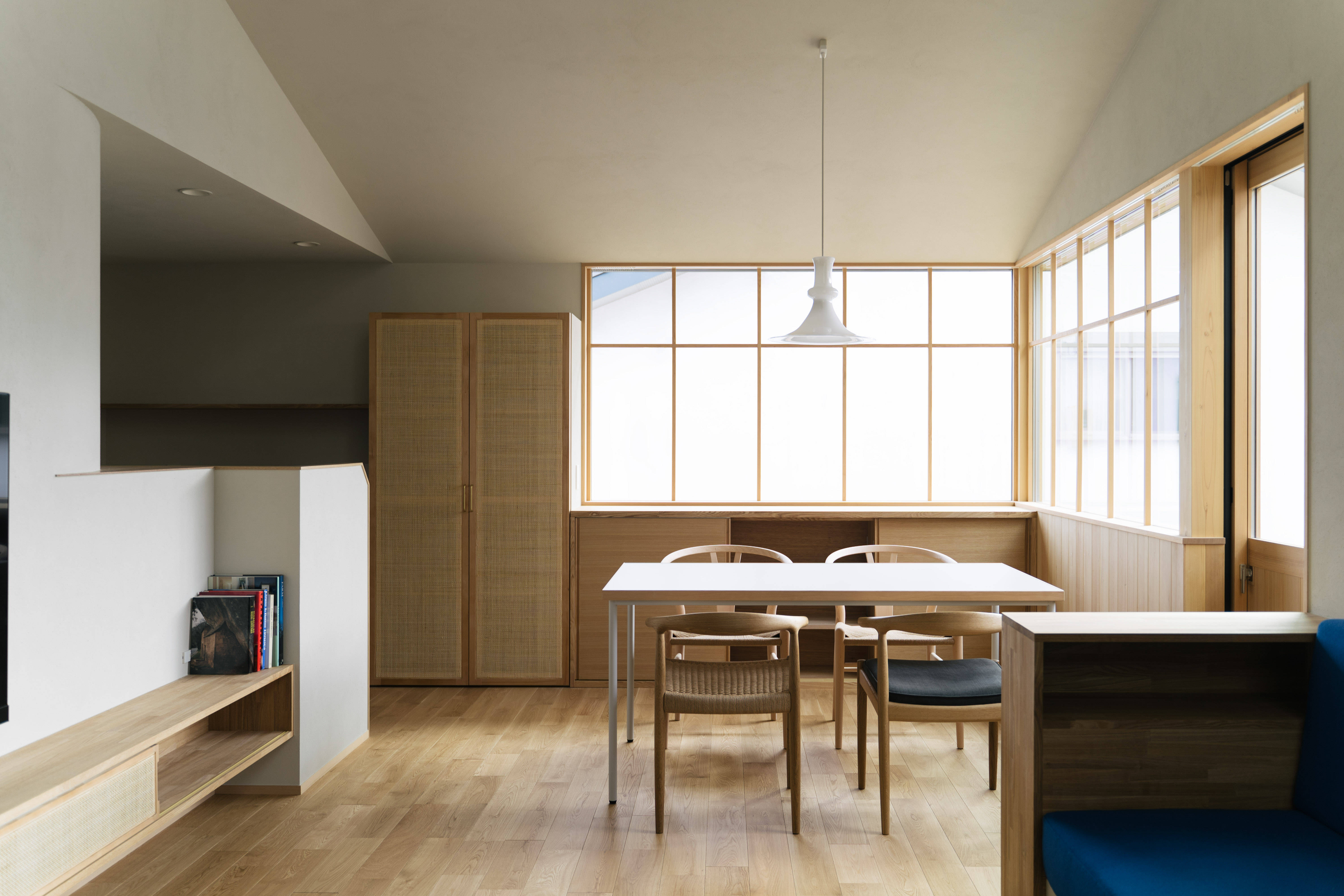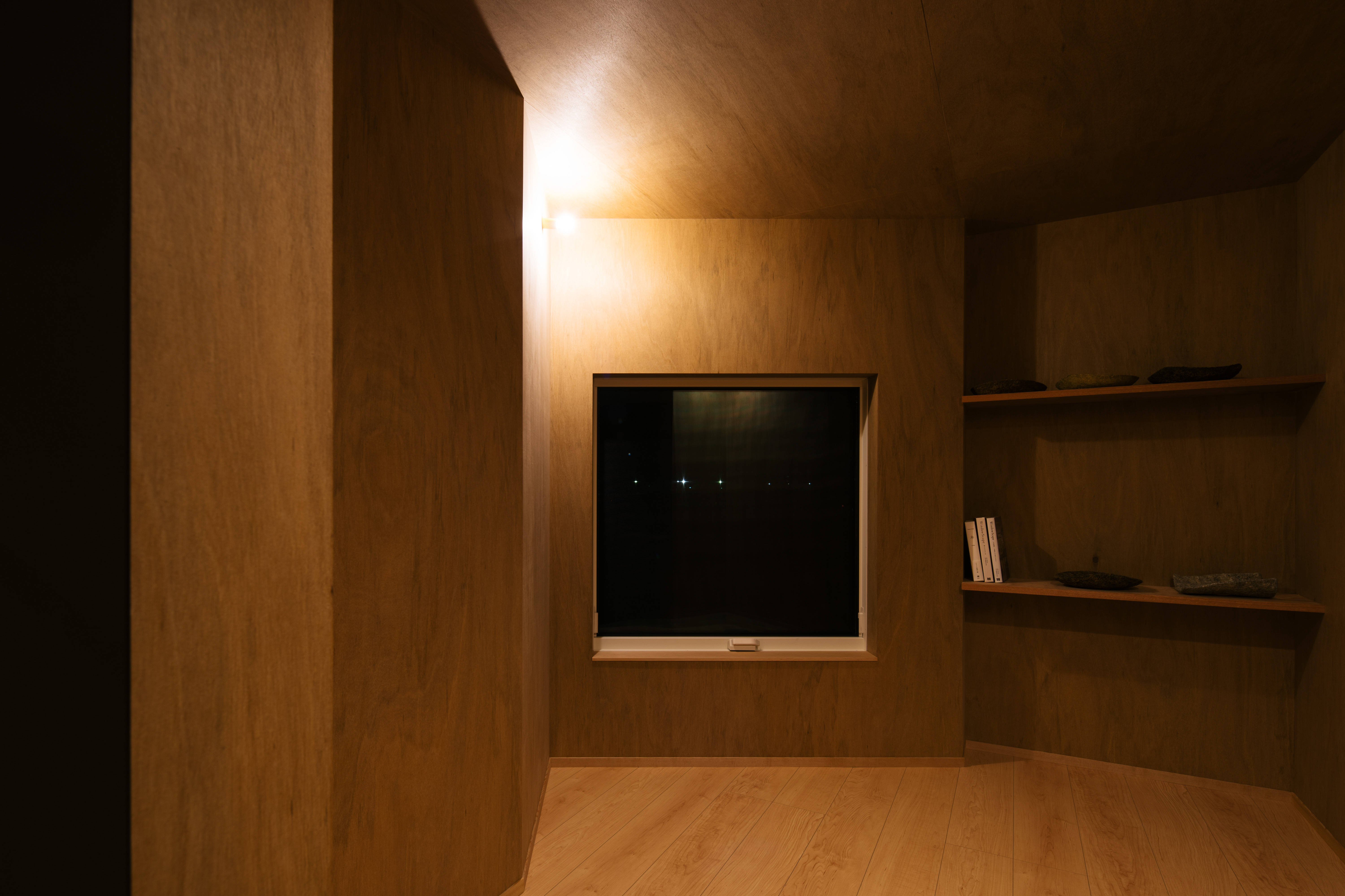実際に住み始めないと明るさの感じは体感できないので、ハイサイド窓の室内側に付けた格子枠に和紙を張って明るさの調整もできるよう保険もかけた設えとしました。