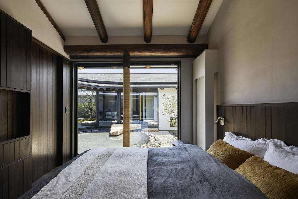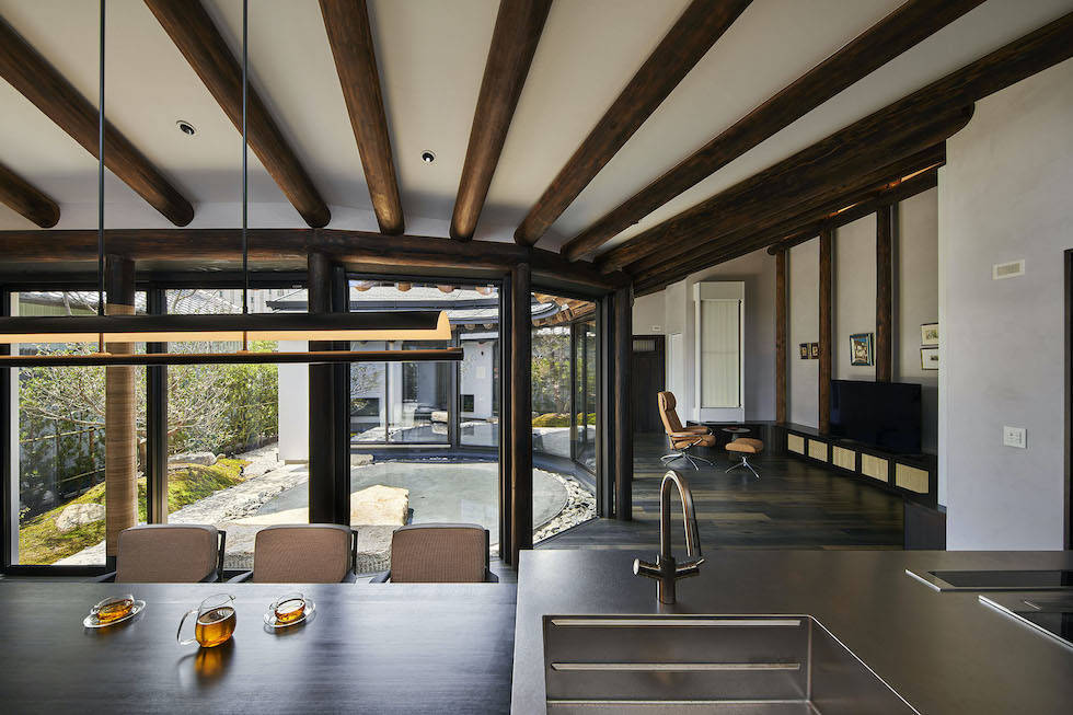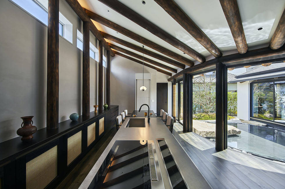 伝統的な技法で素材の美しさを引き出した日本建築版のコロネード。丸太を基点に緩やかな秩序が生まれる空間の中で、自然と共に生活が営まれていく。