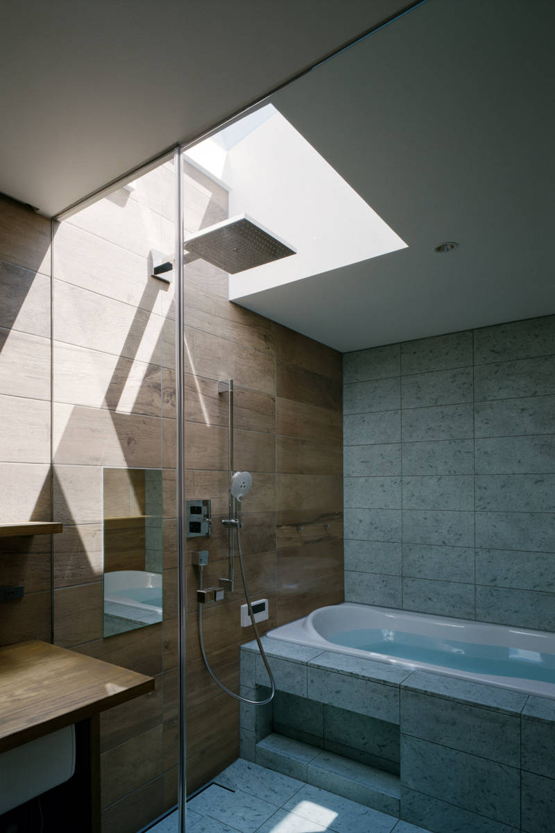 敷地のレベルが道路面より2メートル程上がっており、今回の計画で既存擁壁を一部撤去し、地盤面下に車2台分のガレージと個室を設けました。
