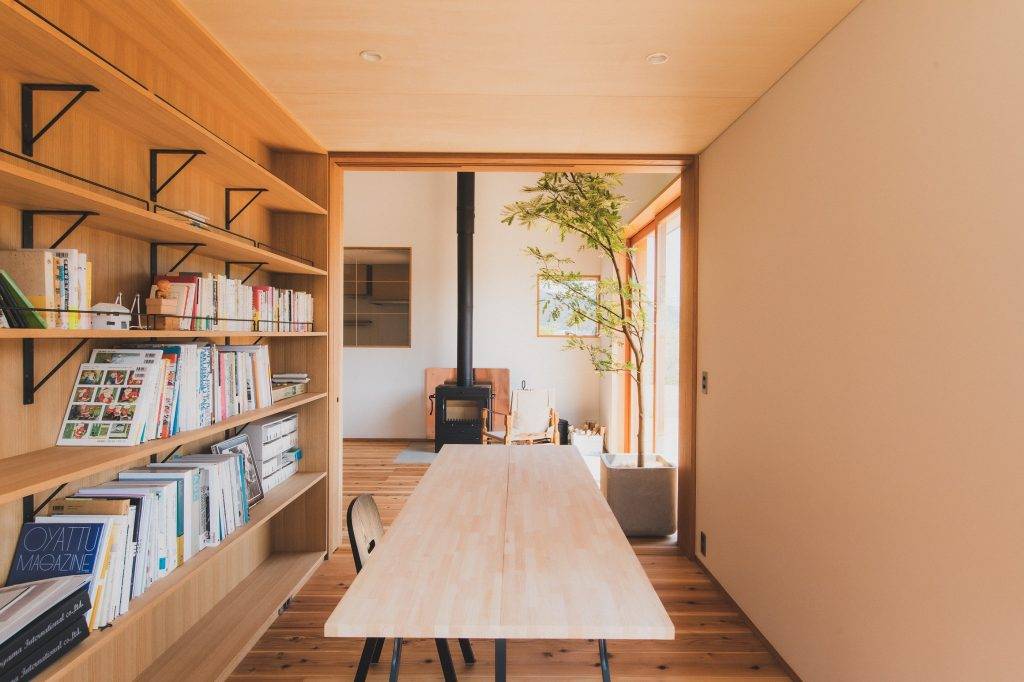 まずその素晴らしい風景を切り取る窓の位置から検討しました。事務所機能も備えている1階は使い勝手を考慮し、資料庫を中心とした回廊プランとしています。書斎のデスクからは各方向へ視線が抜けるように窓を配置しています。
