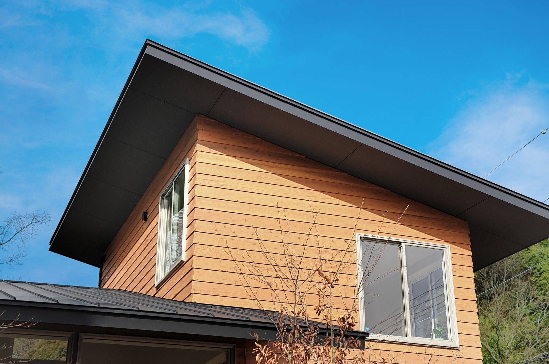 外壁の板張りや様々な方向に流れる屋根の形は今まで何もなかった