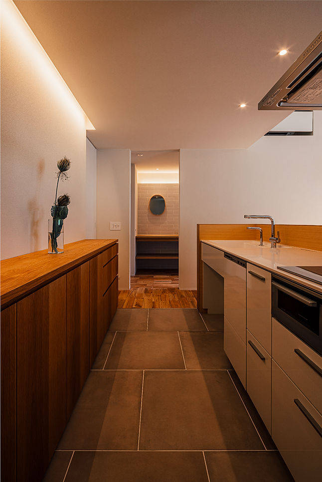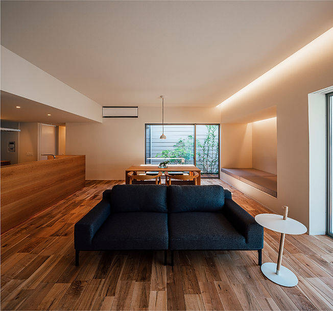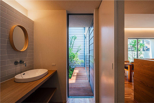 また奥まったキッチンが暗くならないように、中庭は南北に長くすることで、 陽射しを部屋の奥まで届くようにしています。