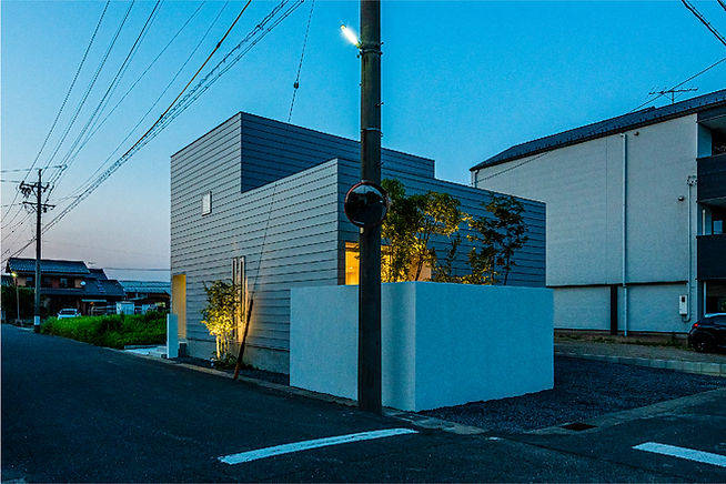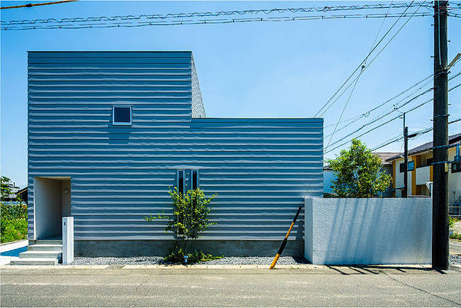 南側と西側の道路と接する南北に長い50坪ほどの敷地で郊外の静かな住宅地。 2方向の道路に接することで、駐車場3台と庭を有効に計画できています。
