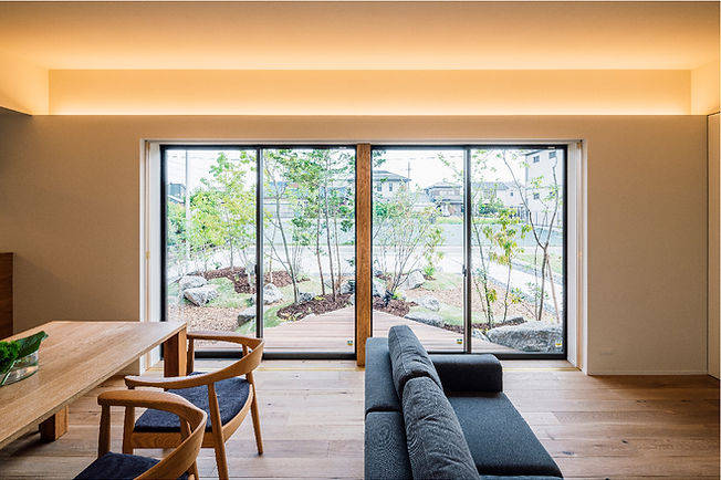 視線が抜ける間取りのため、延べ床面積より広く感じられ 落ち着きのある住まいになりました。