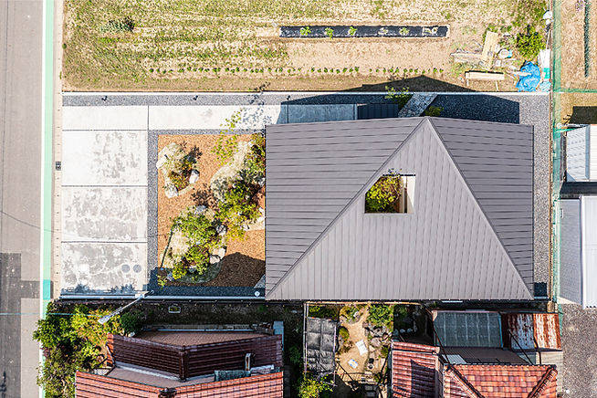 屋根形状は、室内のレイアウトから決められていて、西側の畑からの見映えも考慮した形状になっています。