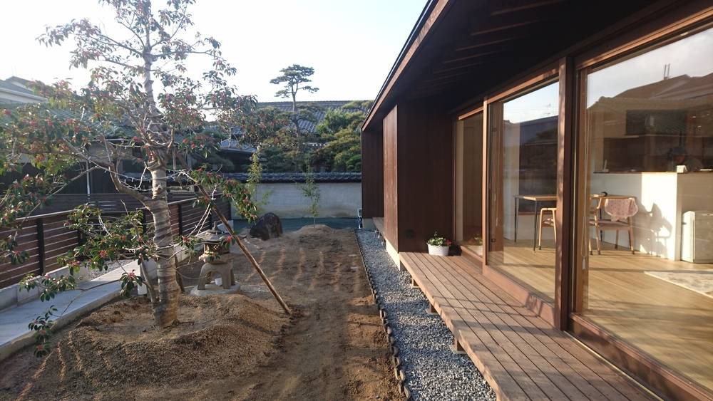 隣接する母屋にご両親が住んでいますが、将来ご夫婦と入れ替わる予定のため、平屋で計画しました。