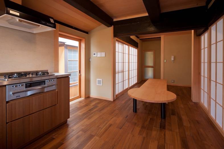 昔の土間を復活させ、近年改修された低い天井を撤去し、現れた小屋組を目のあたりにした時の感動は今も鮮明に覚えている。これぞ民家再生の醍醐味だった。